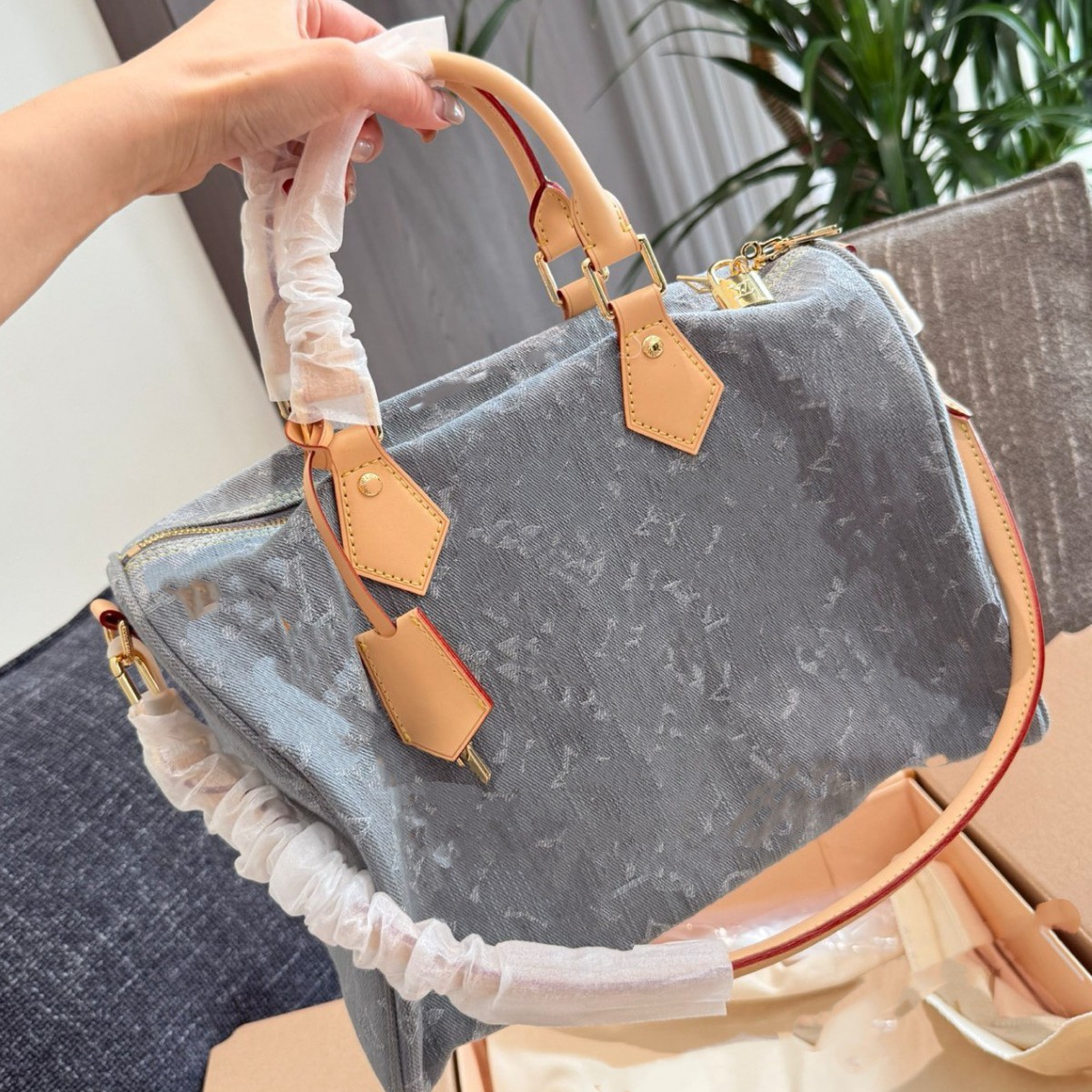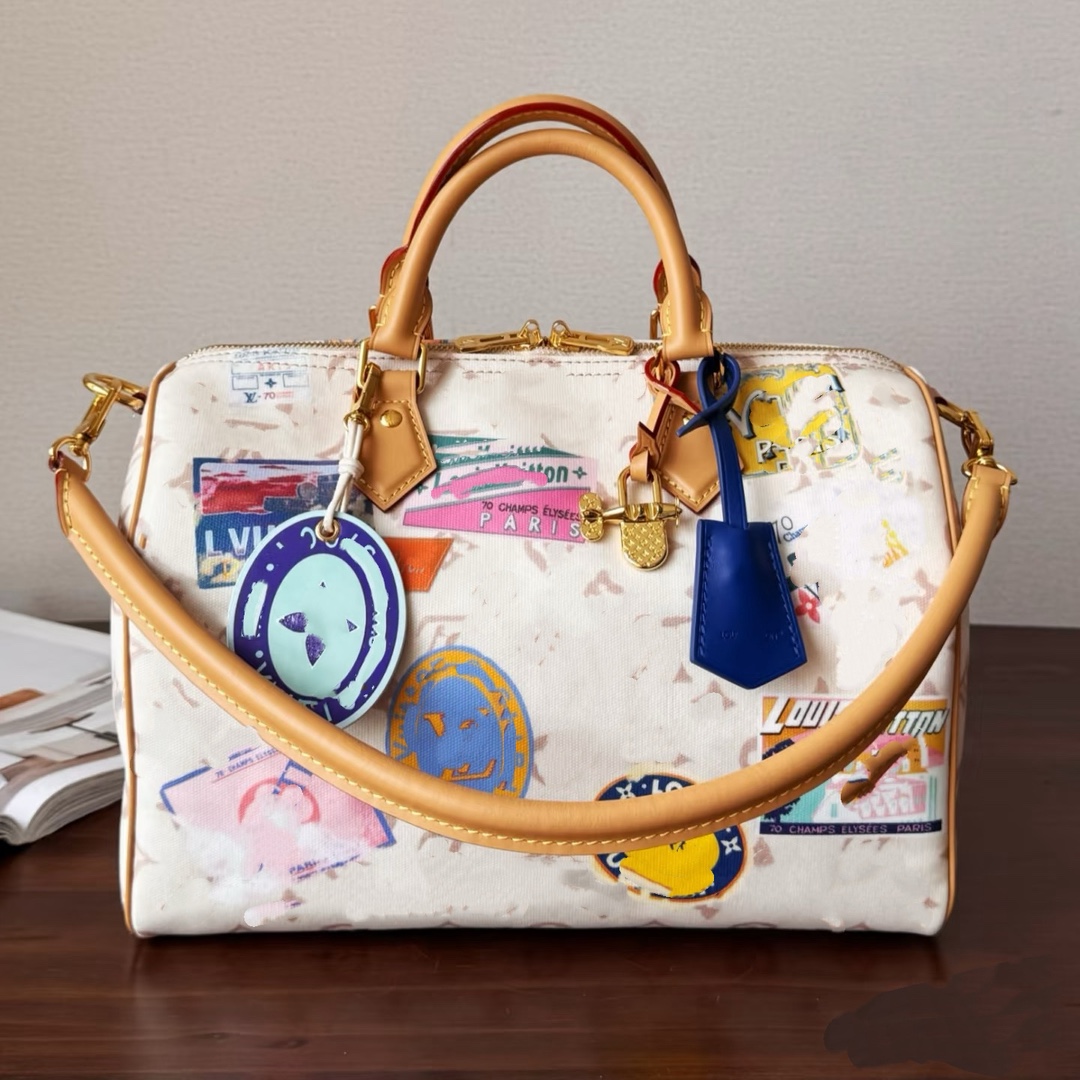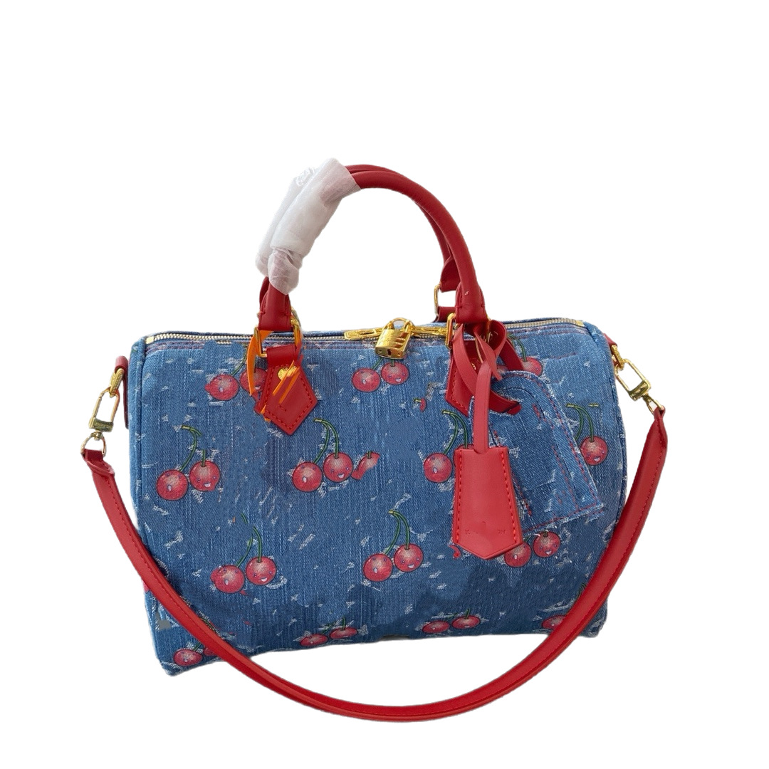 25新款男女包speedy30高级枕头旅行包单肩手提斜挎包三彩丹宁牛仔