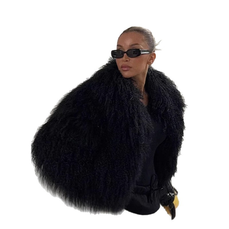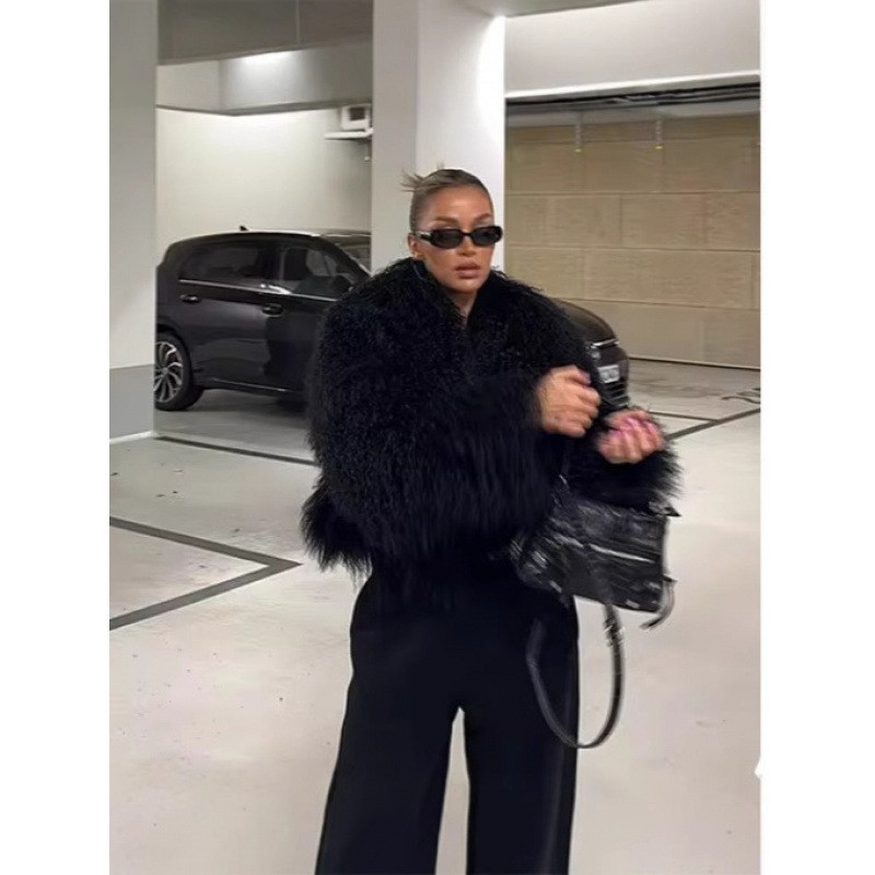 速卖通跨境2025冬季新款街头潮流保暖翻领长袖皮草毛毛外套