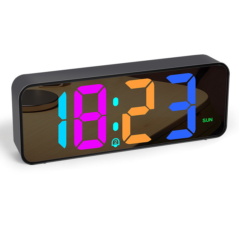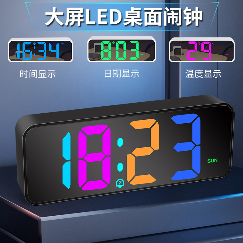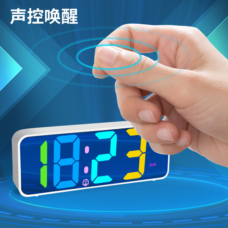 跨境RGB幻彩夜灯LED闹钟智能声控节能时钟桌面办公电子钟学生闹钟