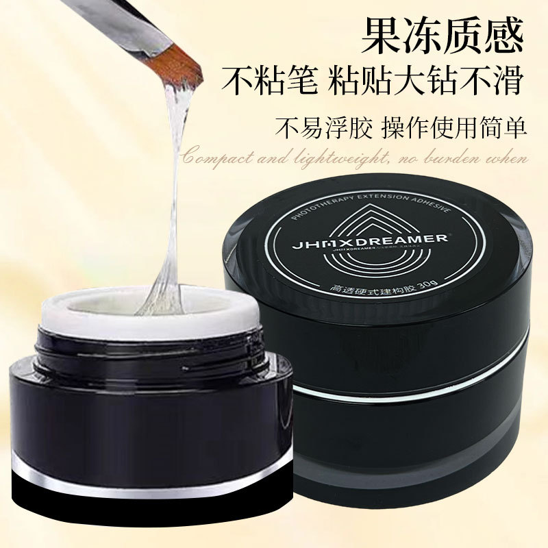 新款美甲高透硬式建构胶 美甲胶30ml果冻质感封层粘钻加固贴片胶