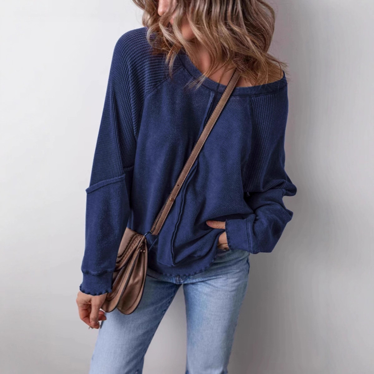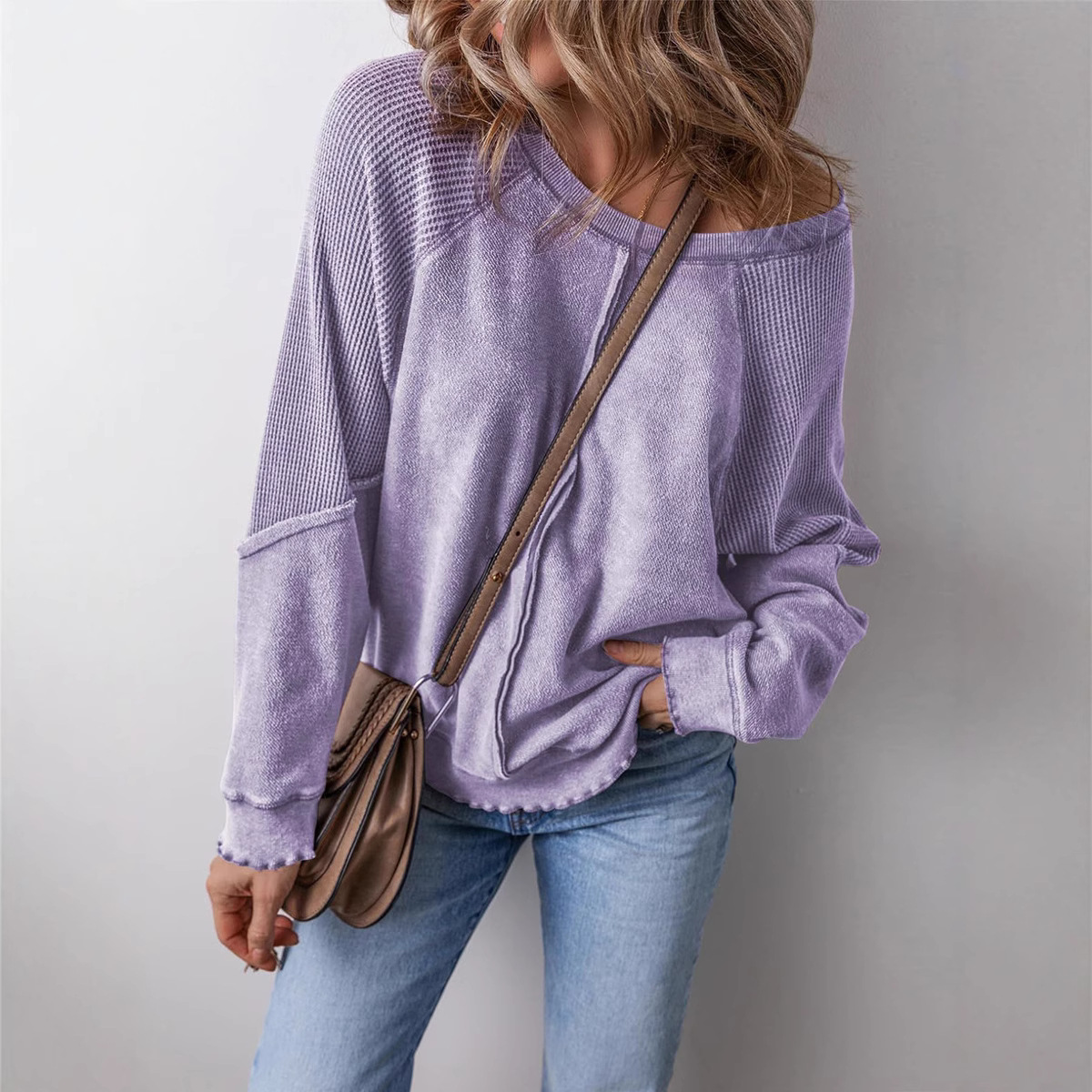 2025欧美跨境亚马逊外贸长袖新款宽松反缝拼接套头圆领上衣卫衣