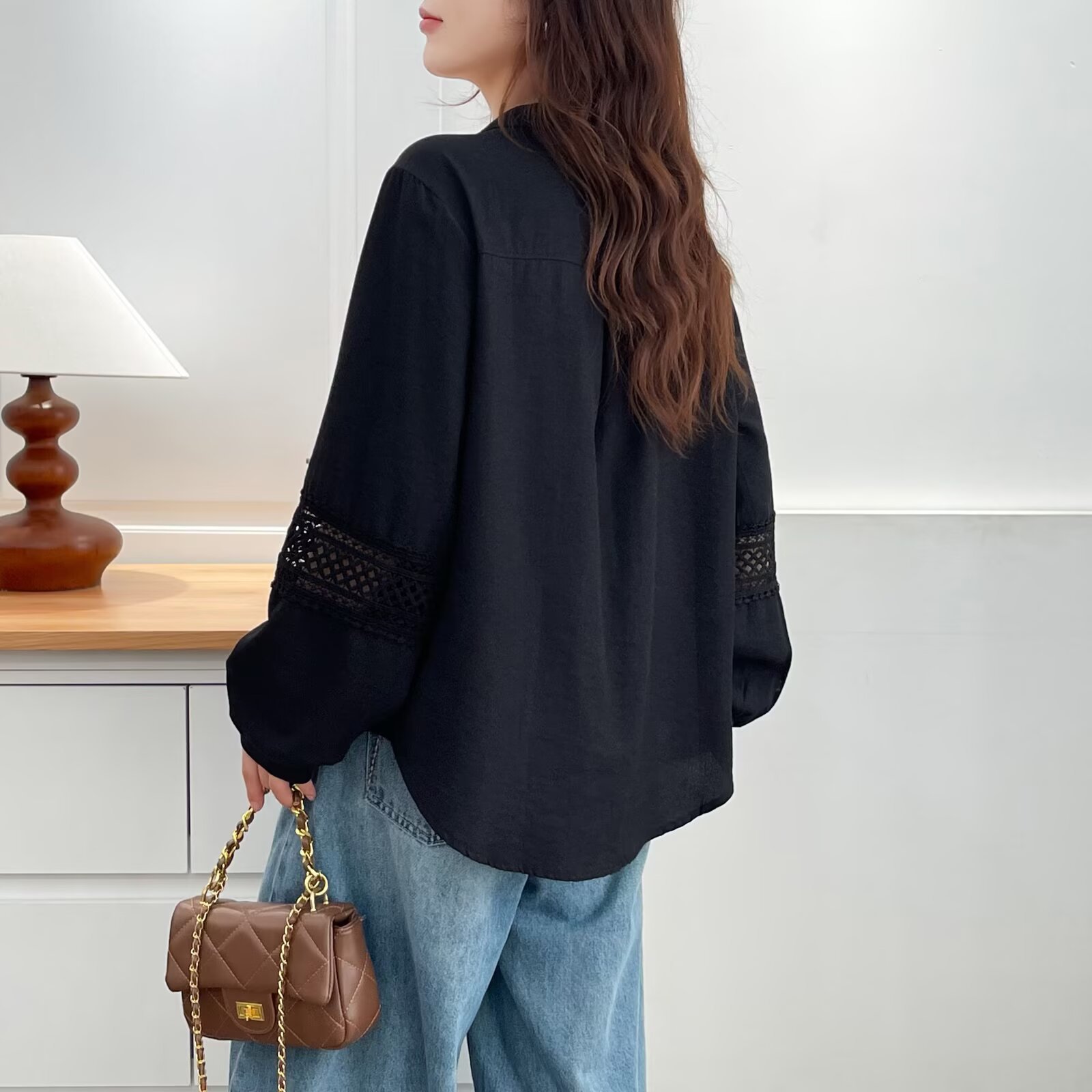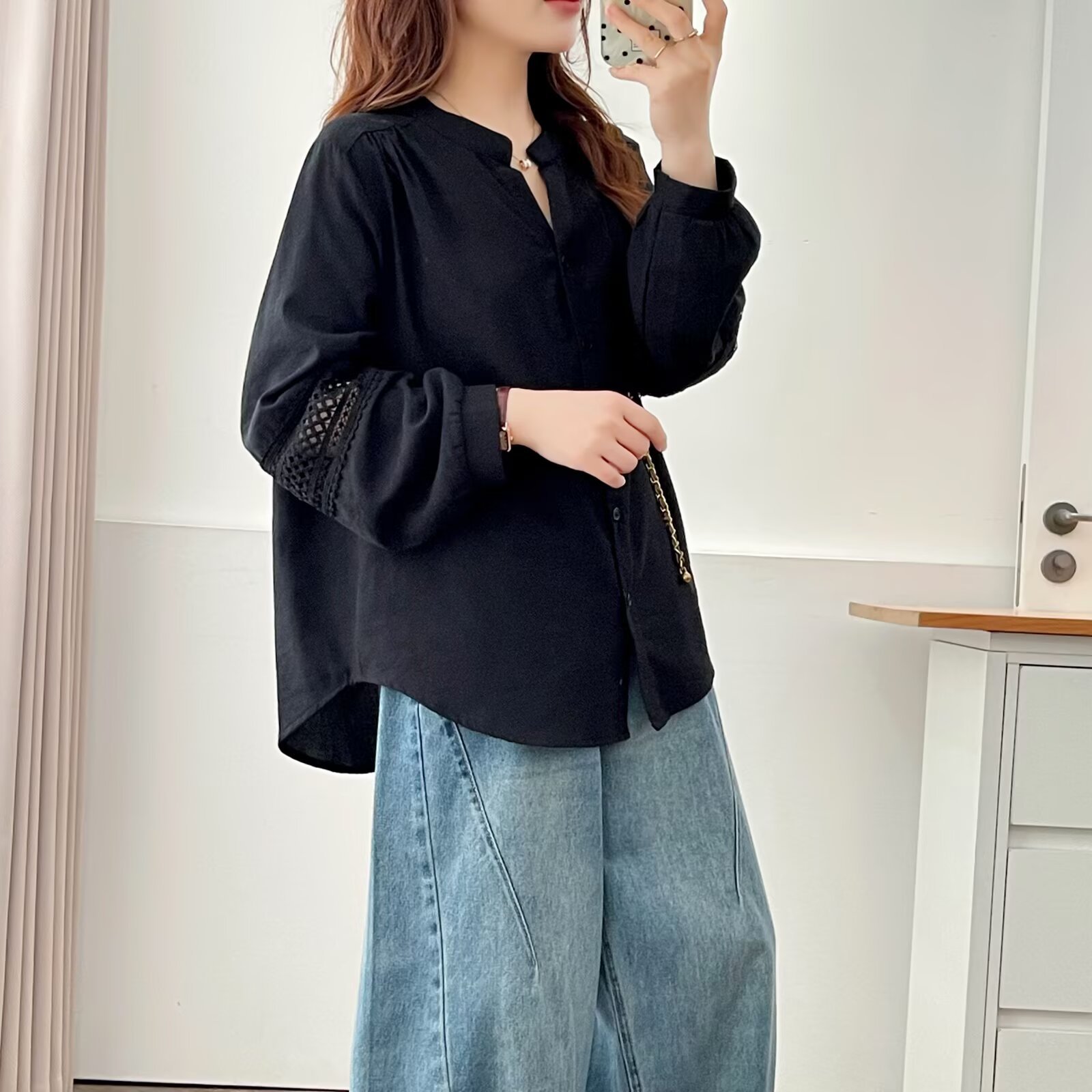 115-200斤大码女装胖秋新款洋气显瘦百搭袖子镂空宽松长袖衬衫
