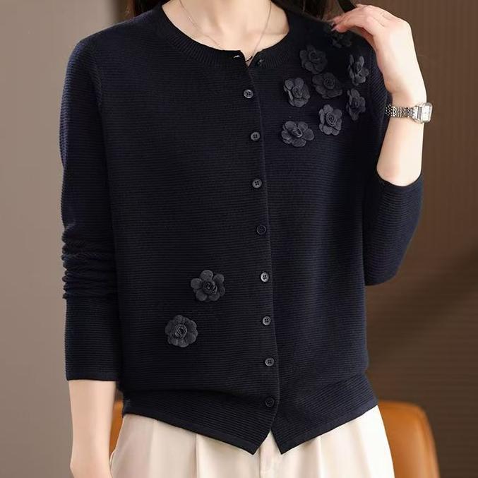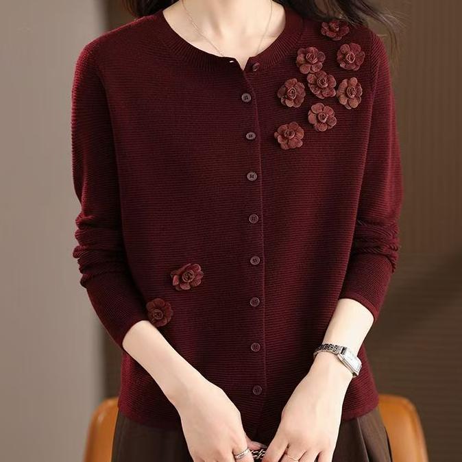跨境女装外贸开衫针织外套妈妈秋装针织开衫外套宽松时尚薄款毛衣