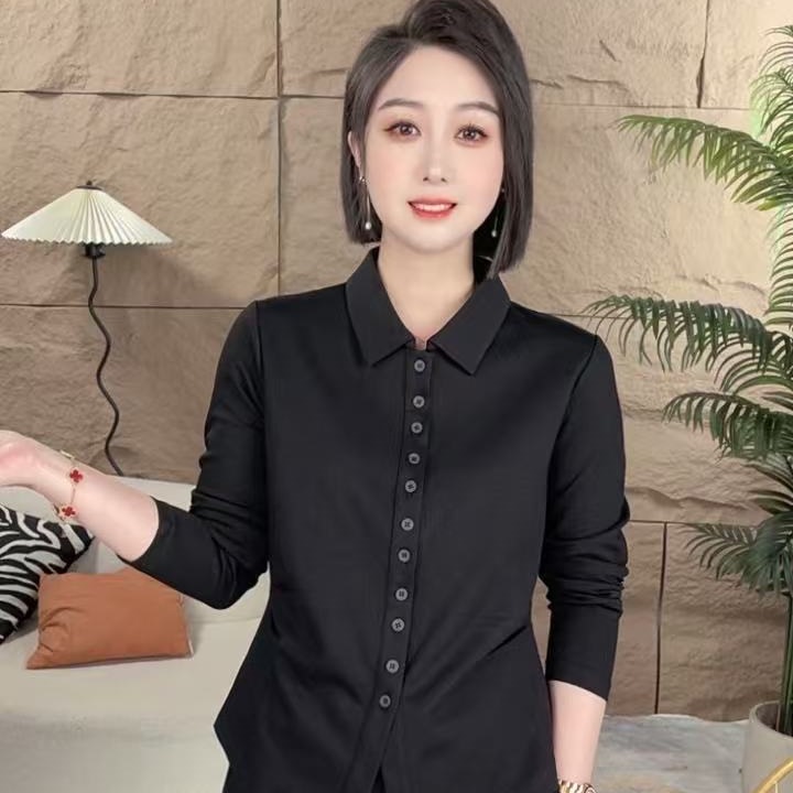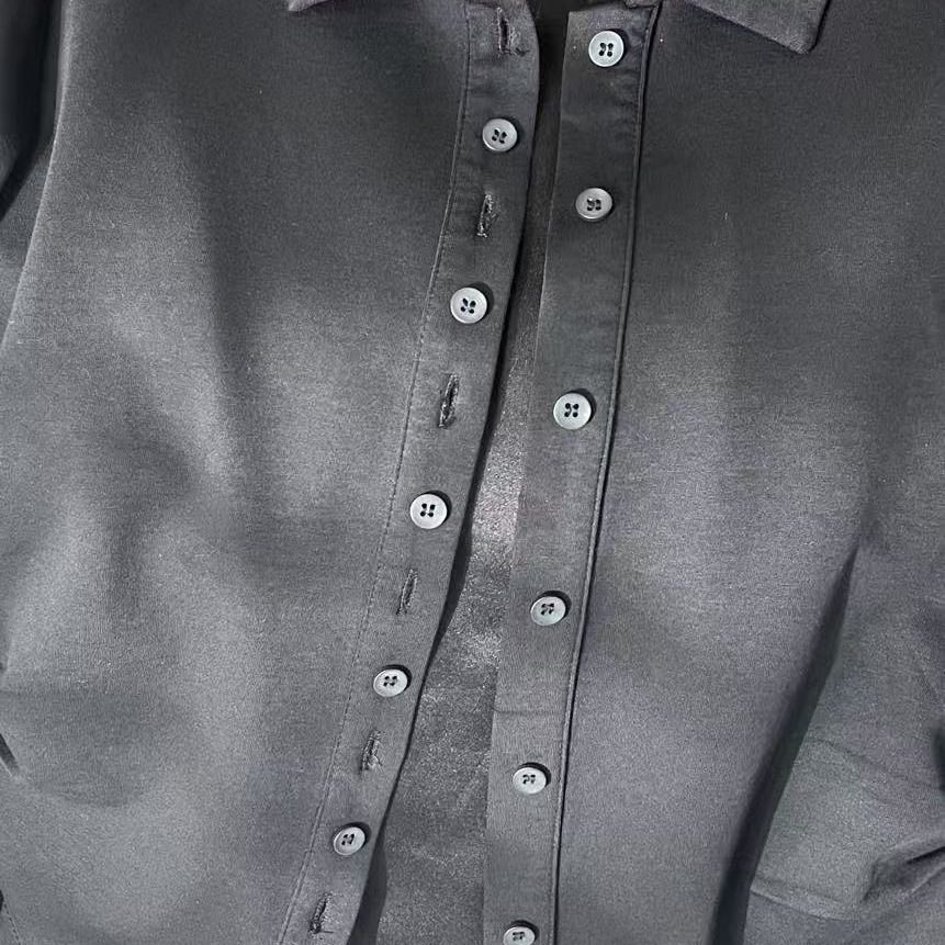 2025新开衫6扣眼秋装简约纯色收腰衬衫扣女气质百搭打底上衣衬衣