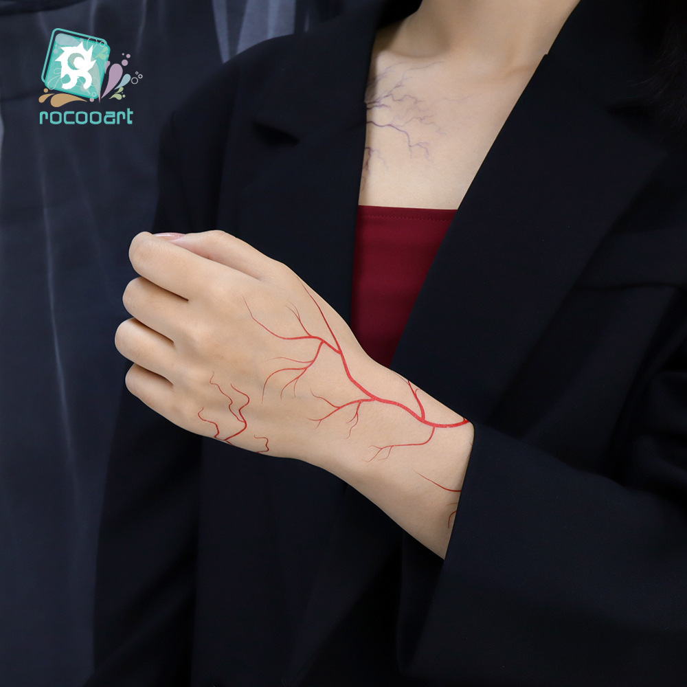 跨境新款亚马逊猎魔女团纹身贴仿真血管kpop纹身贴闪电纹身贴防水
