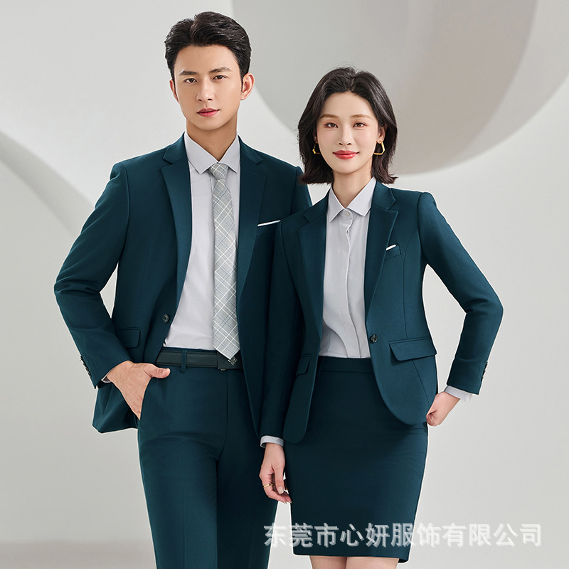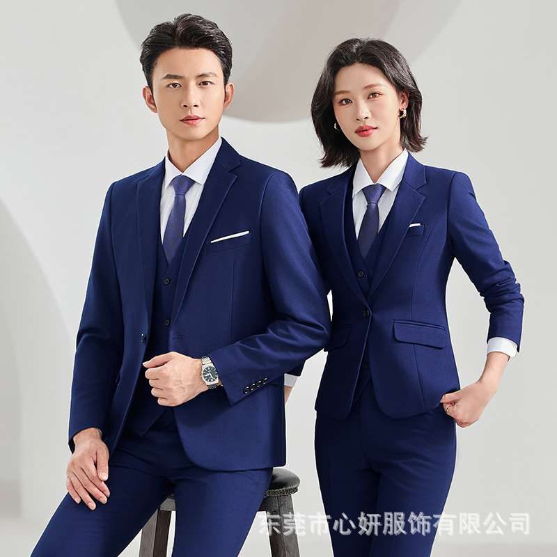 高端教师西服套装秋季男女同款抗皱免烫职业装主持人面试工作服