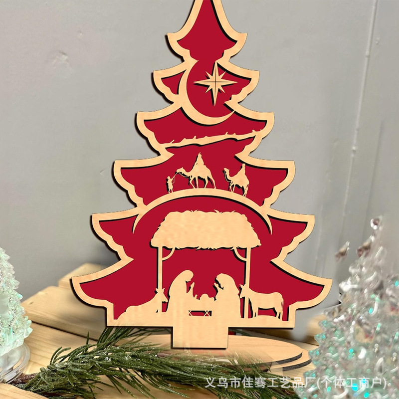 跨境新品创意耶稣诞生,摆件耶稣木质工艺品圣诞树,圣诞节装饰品