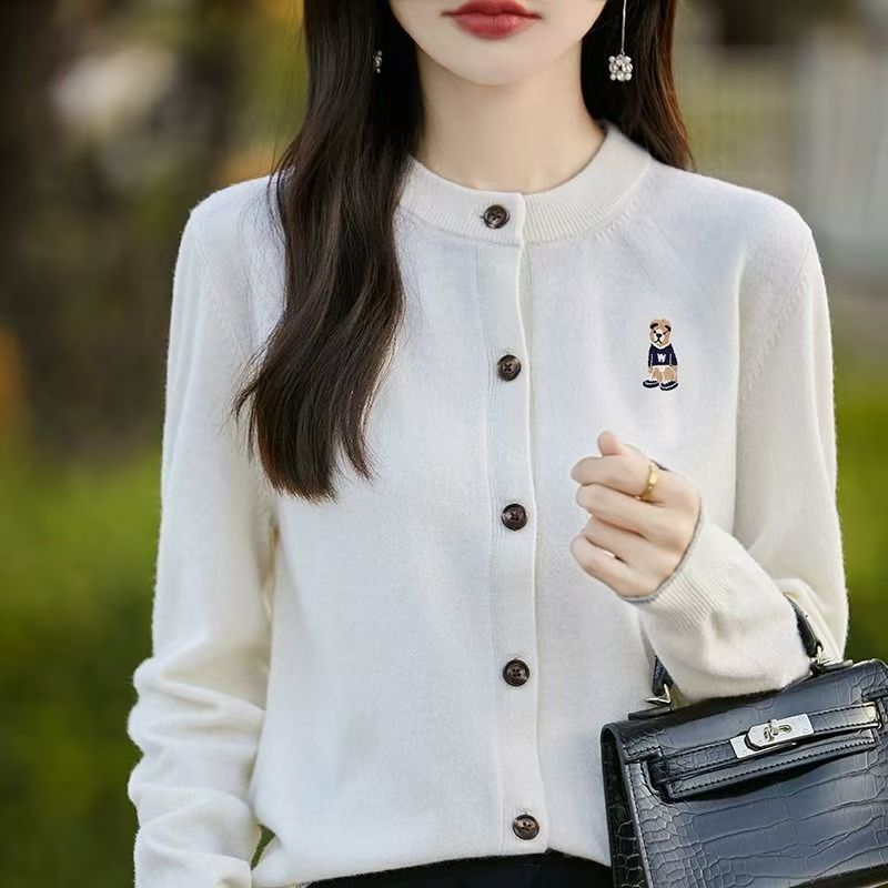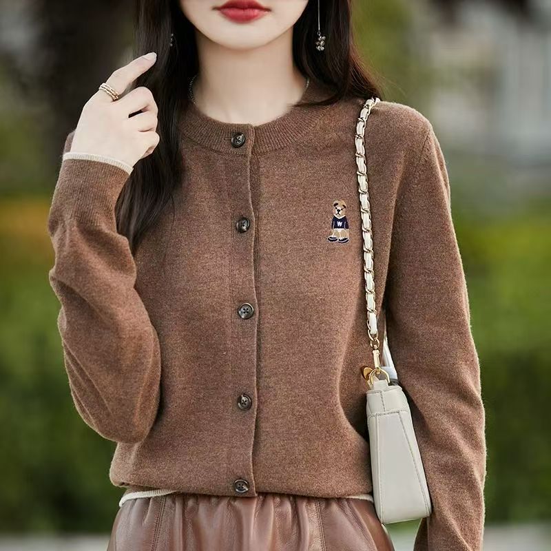 跨境女装外贸开衫针织外套韩版针织衫上衣刺绣小熊长袖开衫女装潮