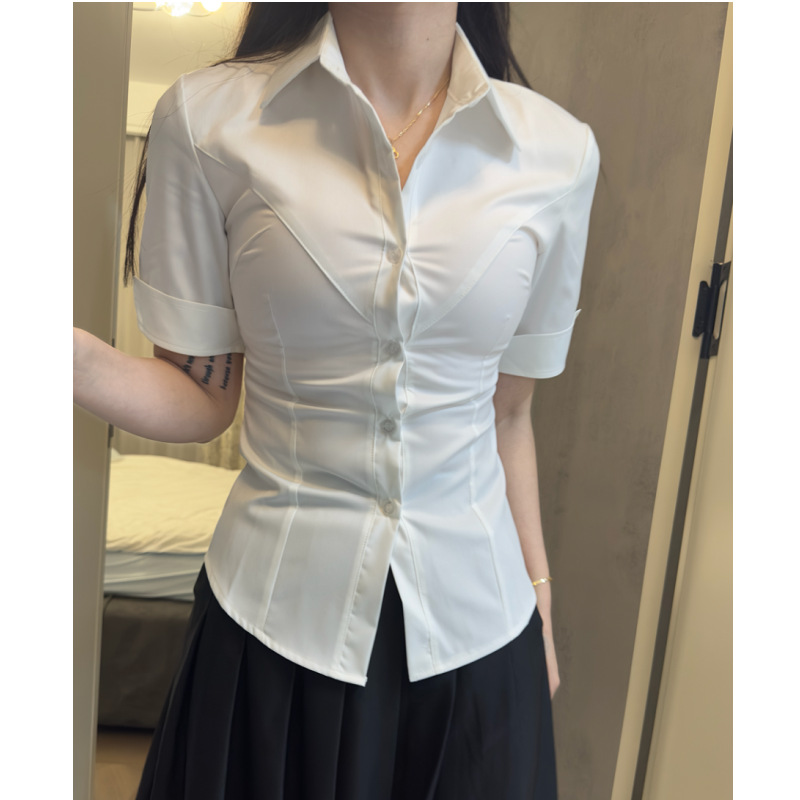 【辣妹衬衫】收腰衬衫显瘦紧身学院风学生套装长短袖春夏纯欲性感
