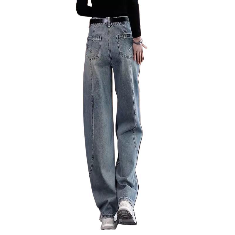 怀旧复古蓝牛仔裤女春秋季2025新款高腰弯刀裤香蕉裤阔腿宽松裤子