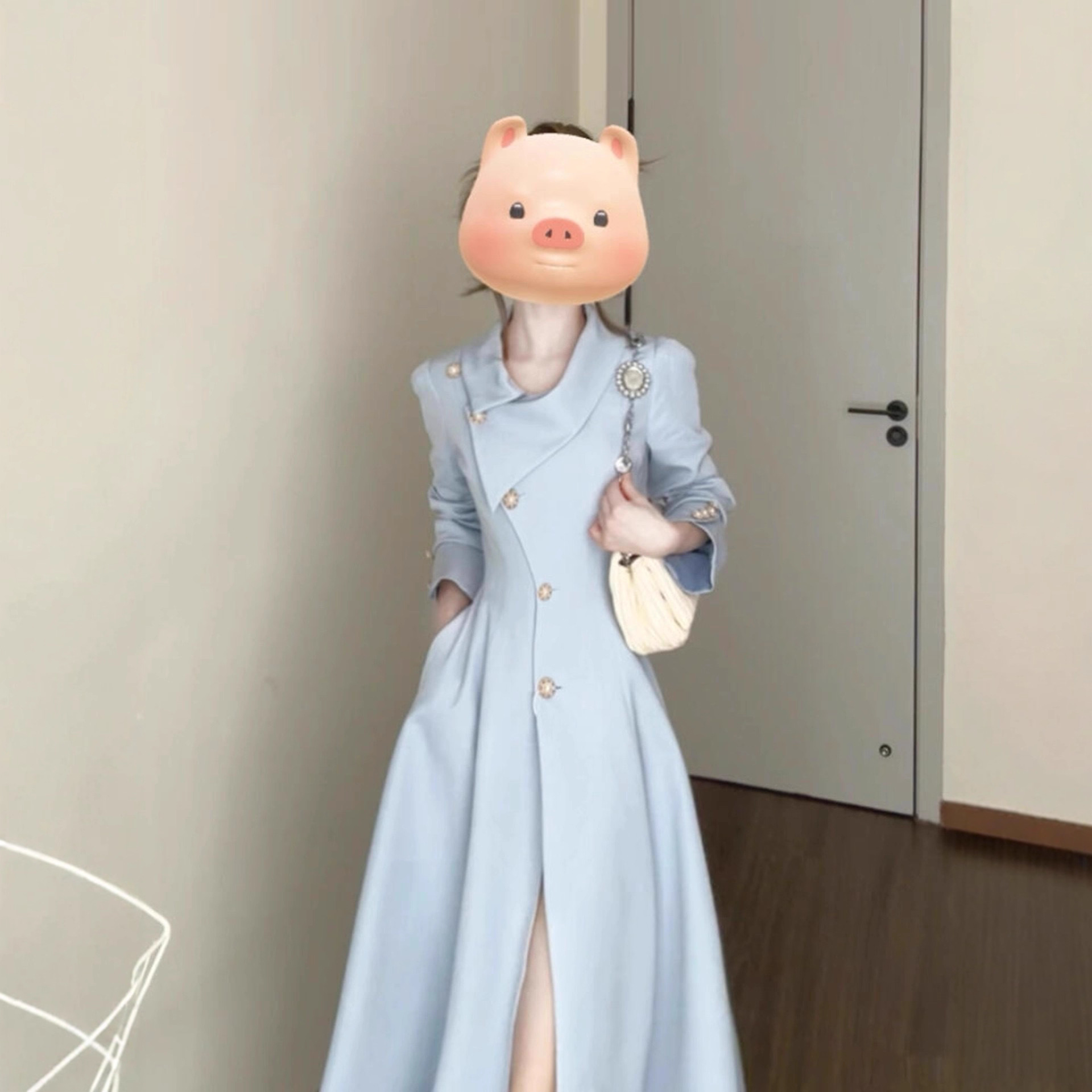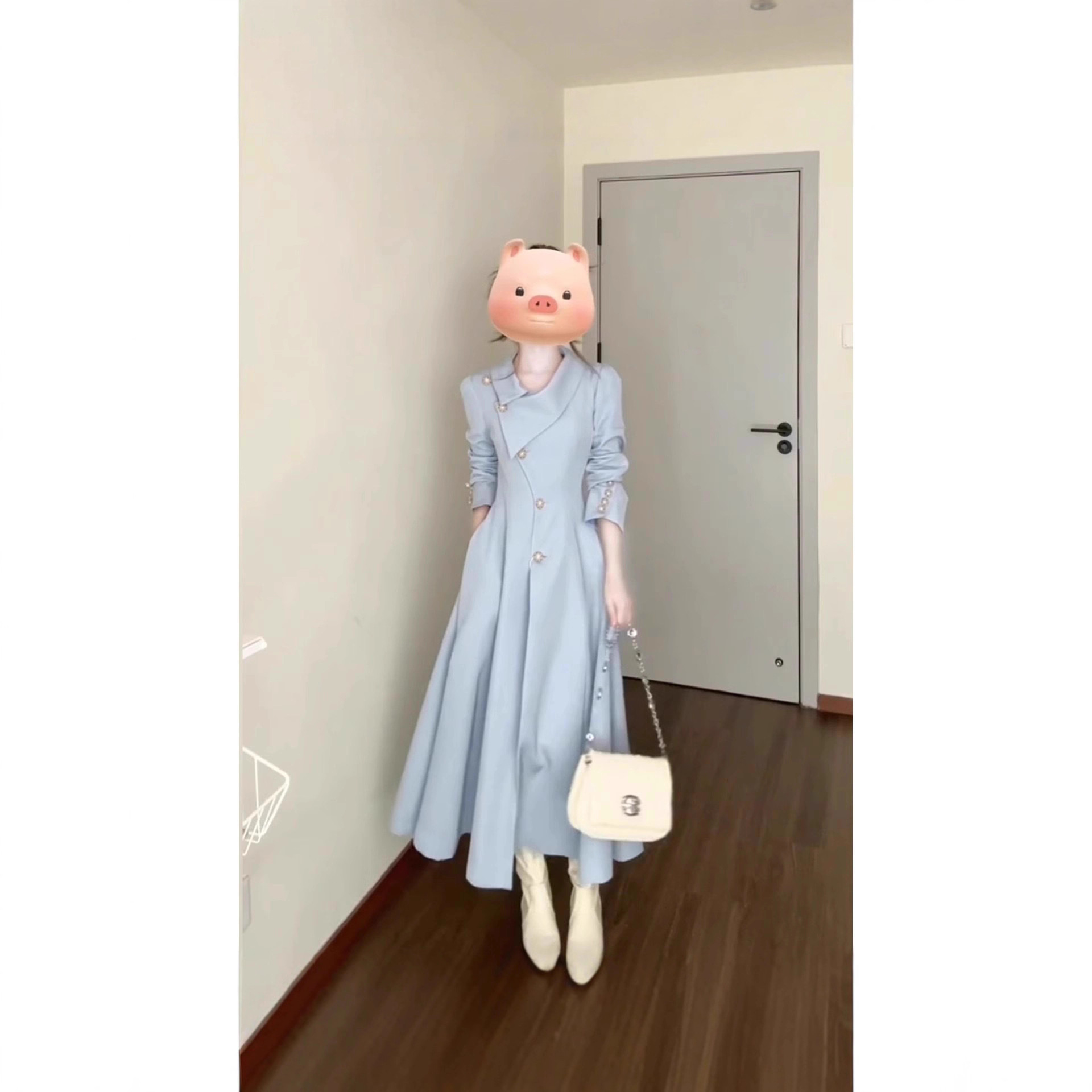 XZY 微胖法式复古收腰长袖风衣外套女25年早秋优雅气质中长款大衣