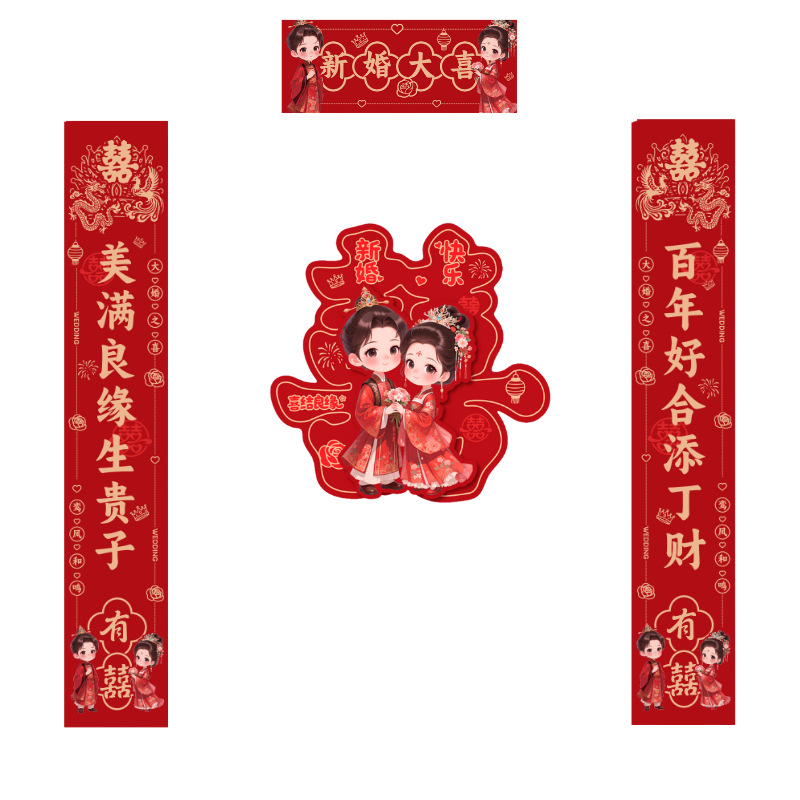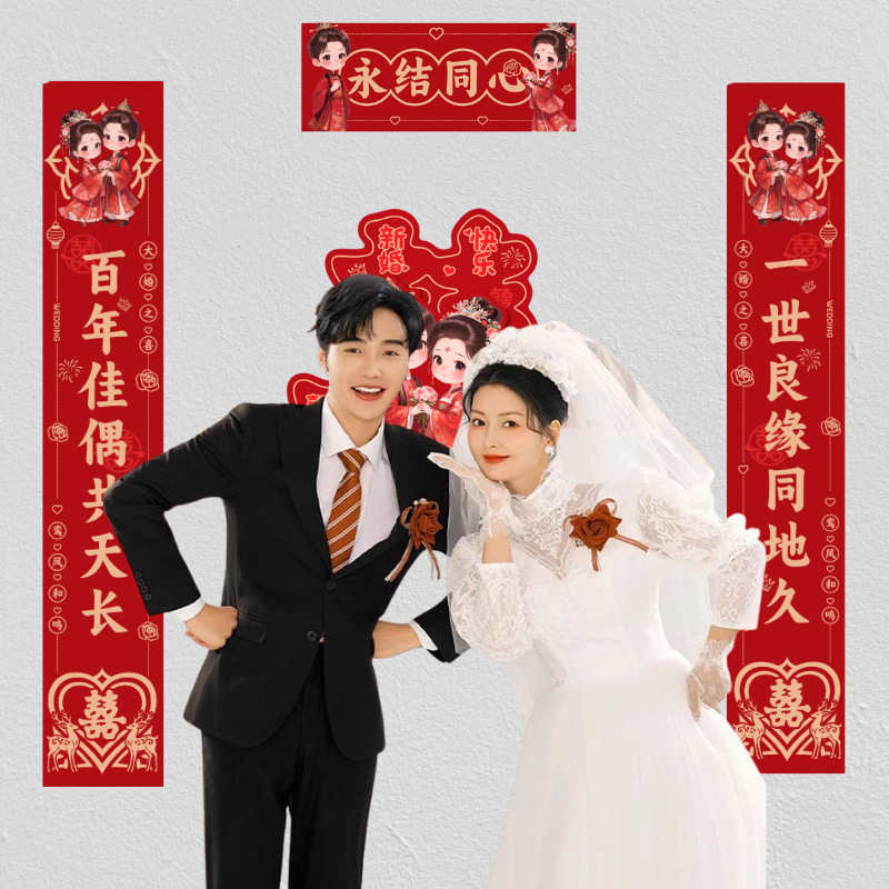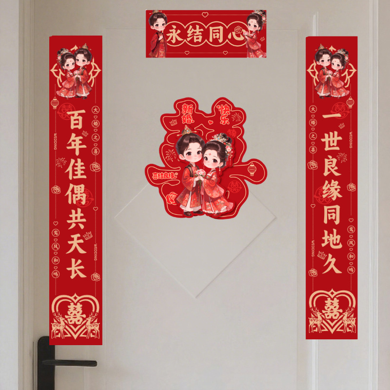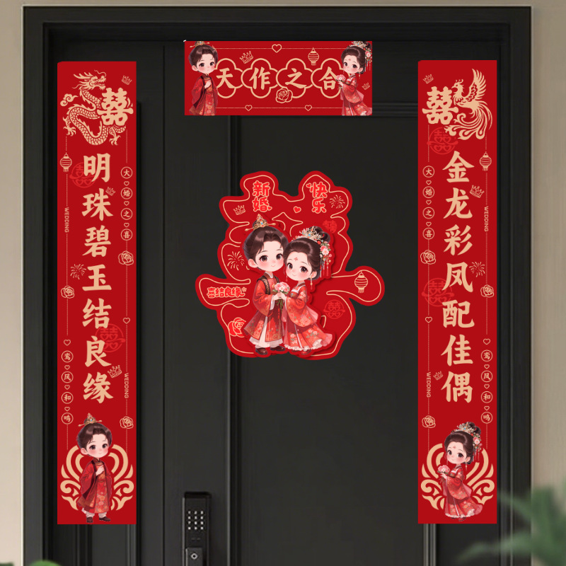 结婚对联喜庆婚礼农村大门房间门男女方娶亲嫁女婚房植绒对联