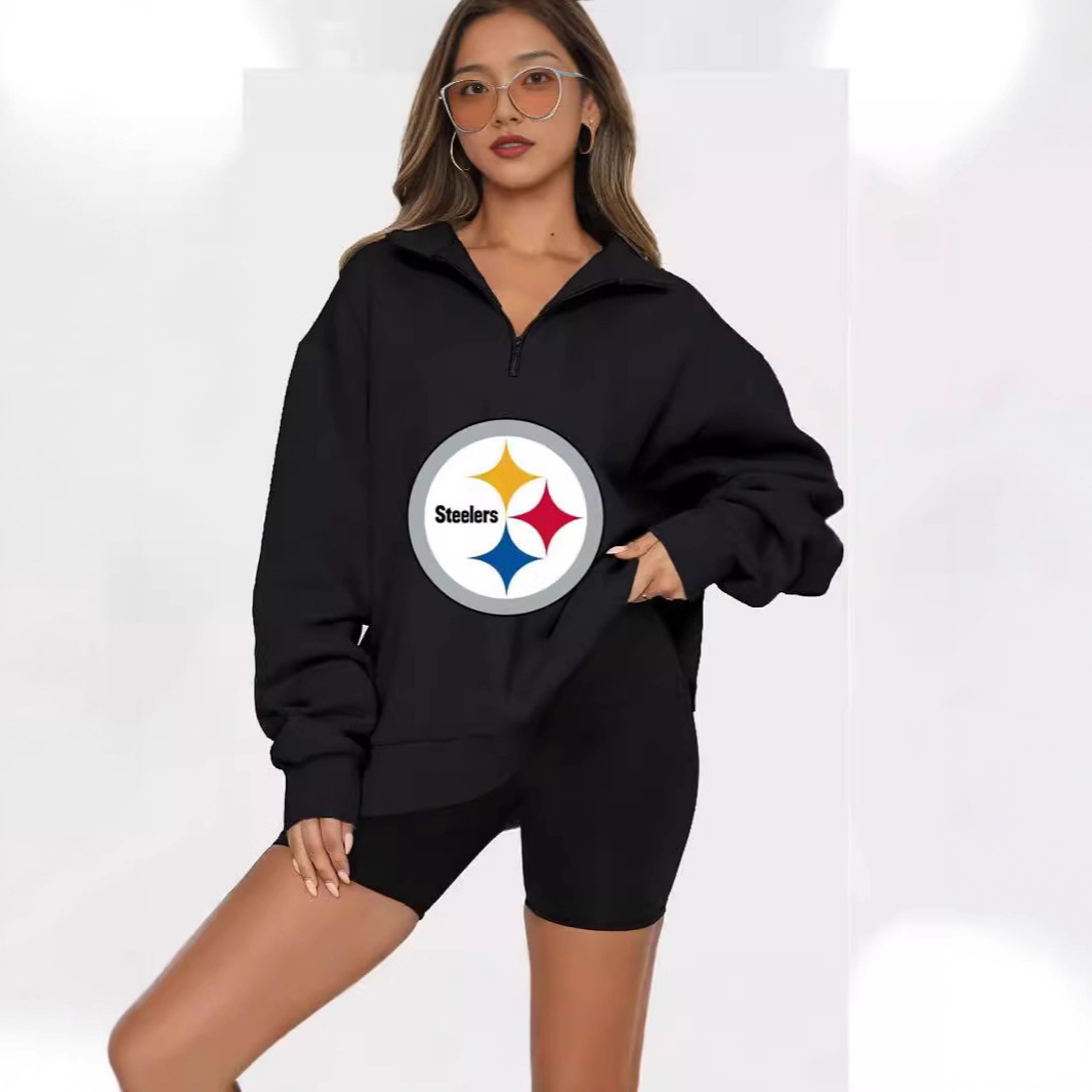 2024秋冬跨境卫衣3D数码印花立领女士街头潮流拉链polo卫衣208