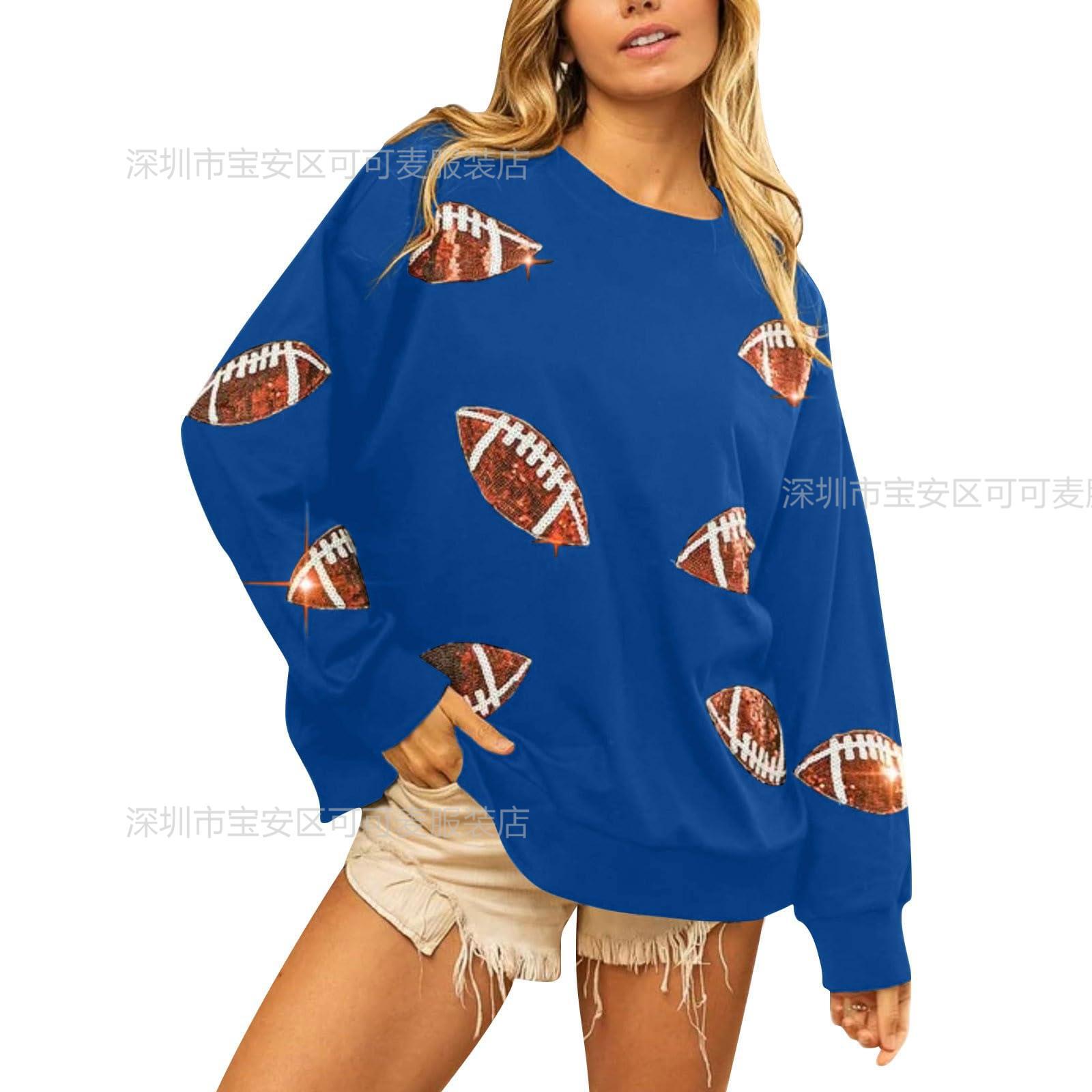 跨境外贸欧美亚马逊秋新款舒适休闲亮片橄榄球时尚长袖圆领卫衣女