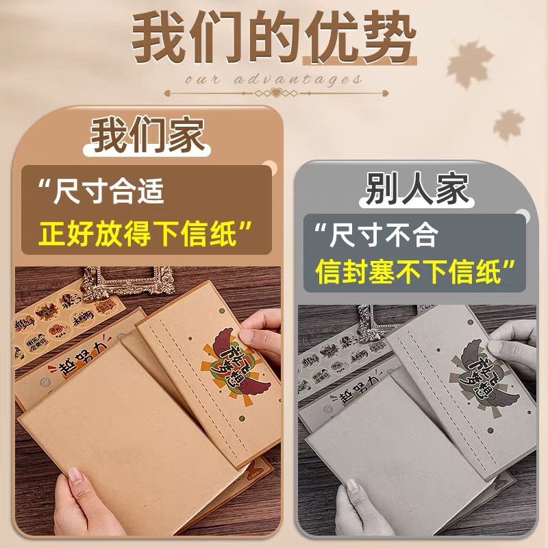 尺寸 | [单色50套丨牛皮纸]含信封+信纸+封口贴 | 尺寸 | [混搭40套丨月光白/牛皮]含信封+信纸+封口贴 |