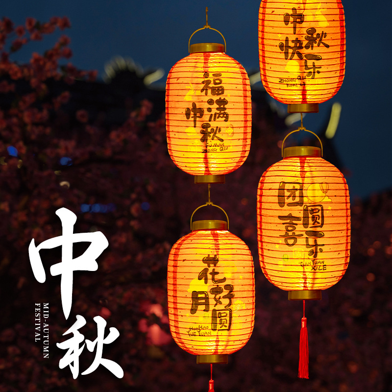 颜色 | 可发光【赠送手提杆+电池】 | 颜色 | 手提金盖灯笼(红圆)-中秋快乐01 |