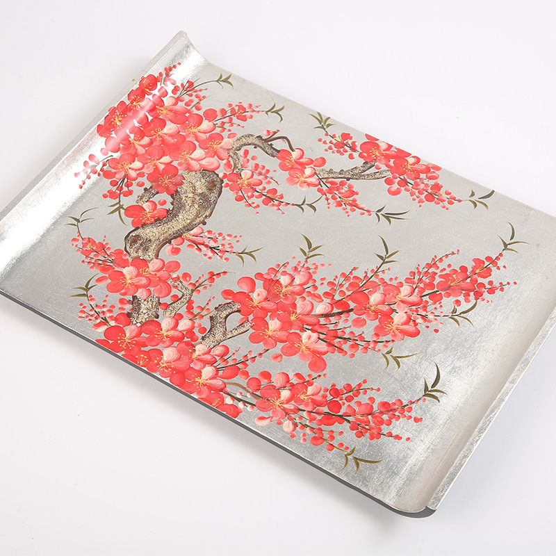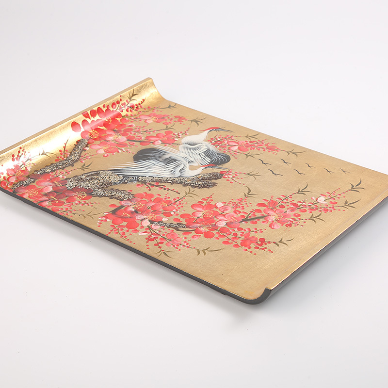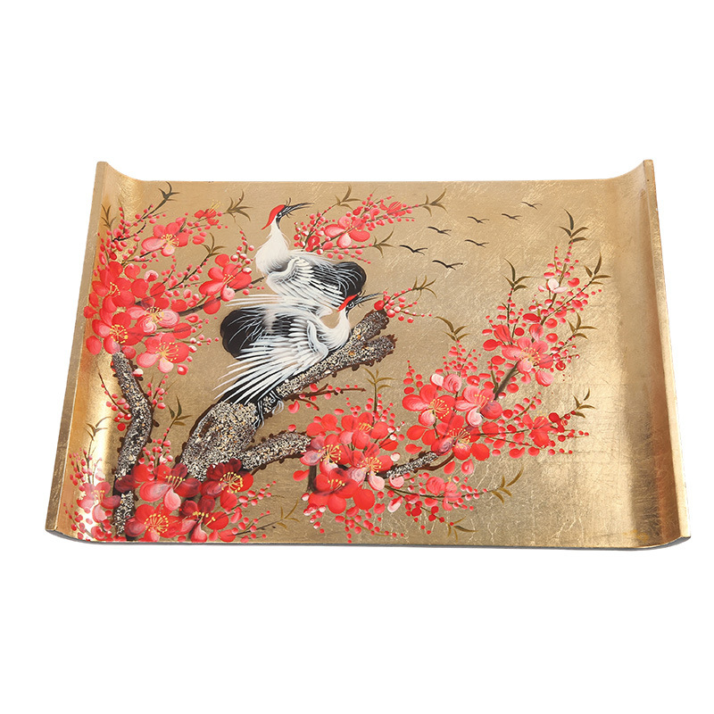 越南进口漆器漆器摆件日式茶盘软装纯手工工艺梅花彩绘进口茶盘