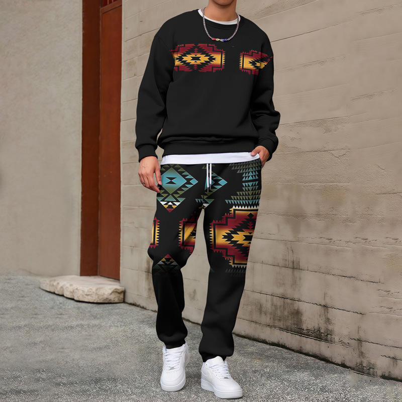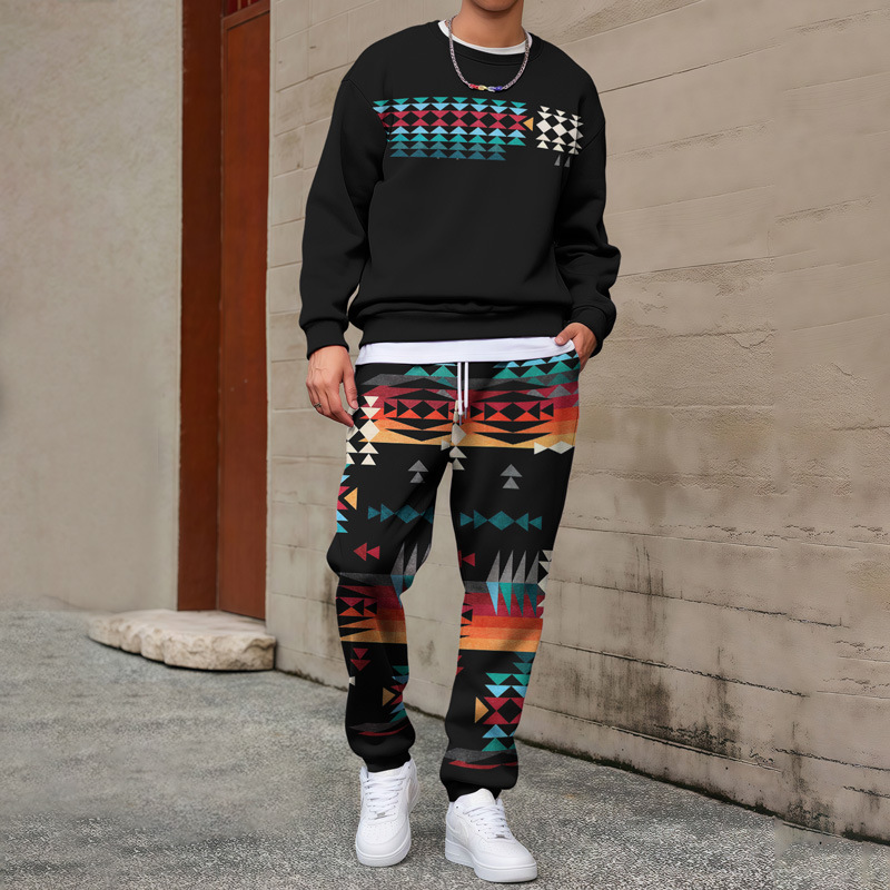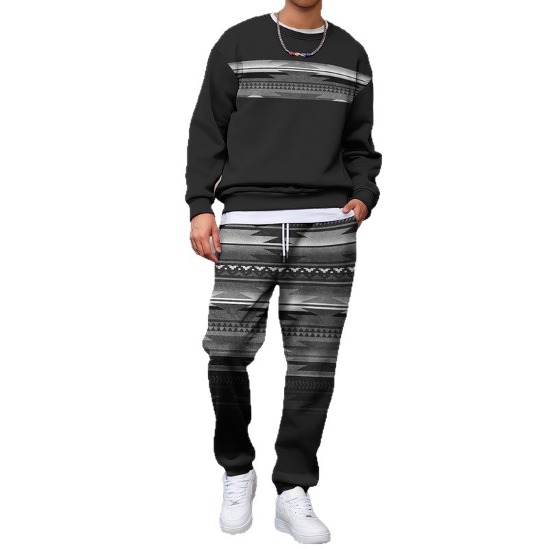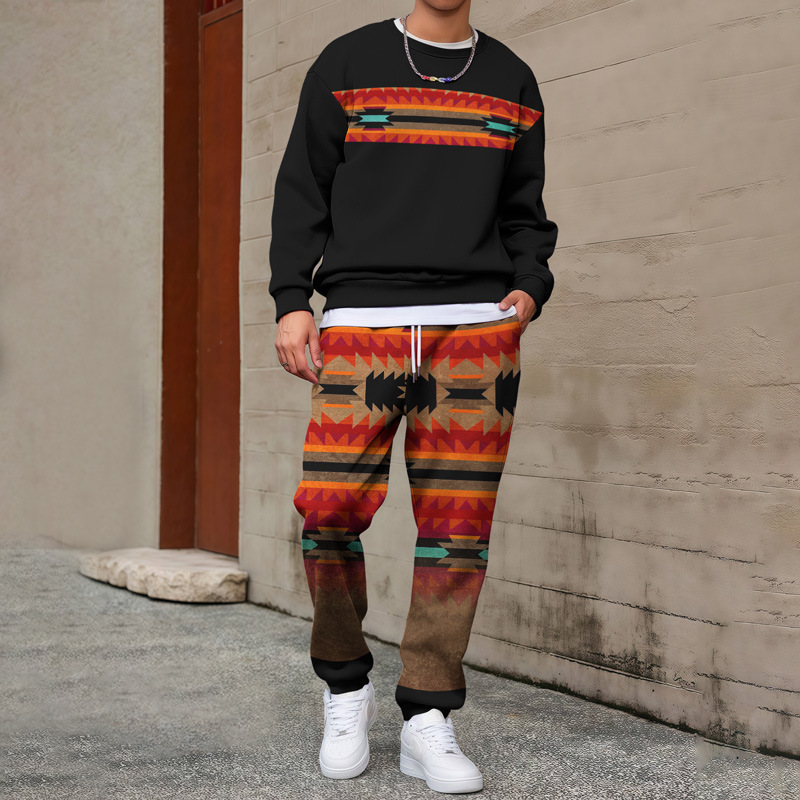 波西米亚风2025独立站跨境男士新款潮流欧美秋季休闲运动卫衣套装