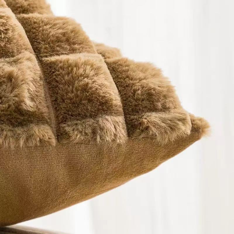 跨境极简奶芙格毛绒沙发布艺靠枕家用客厅抱枕套现代简约纯色靠垫