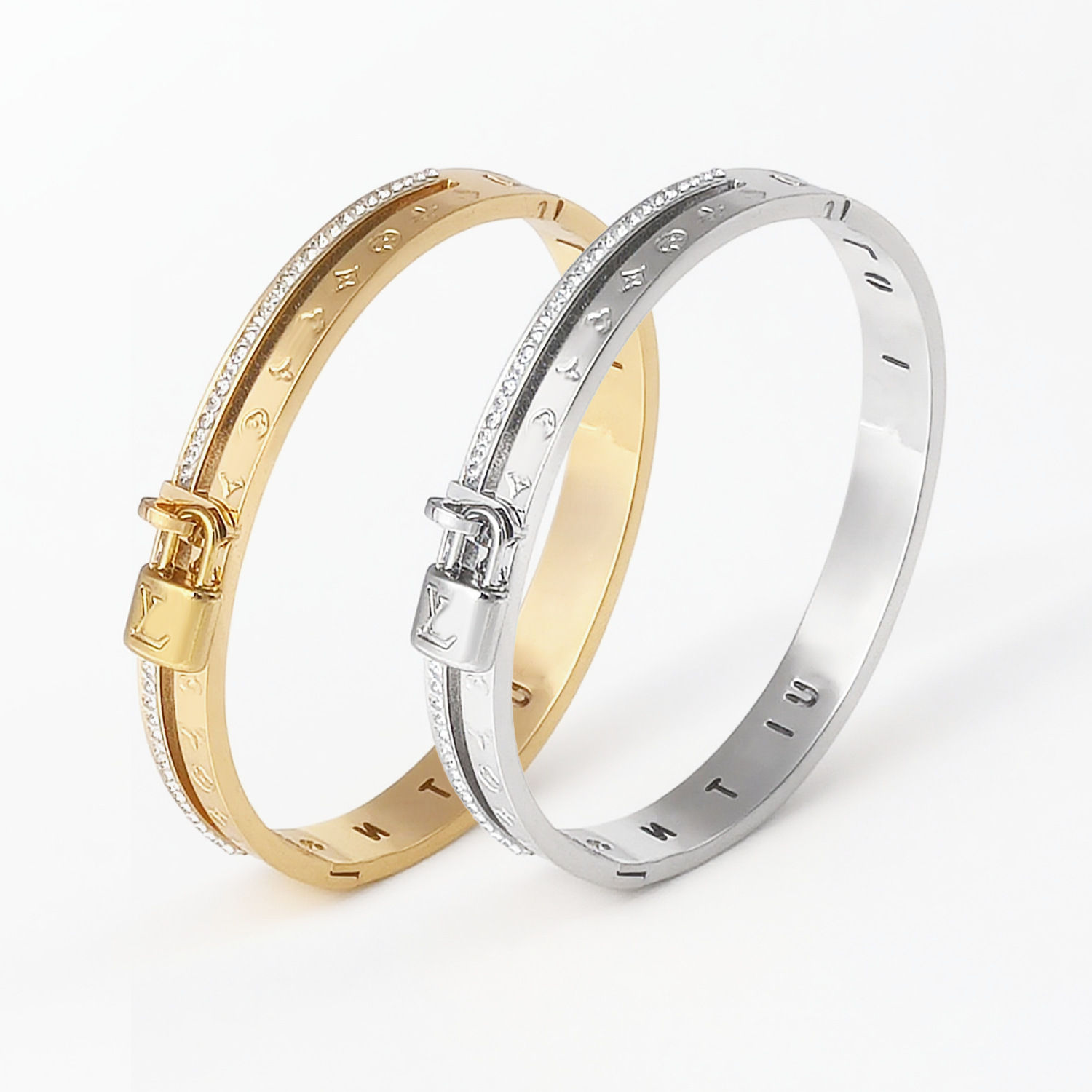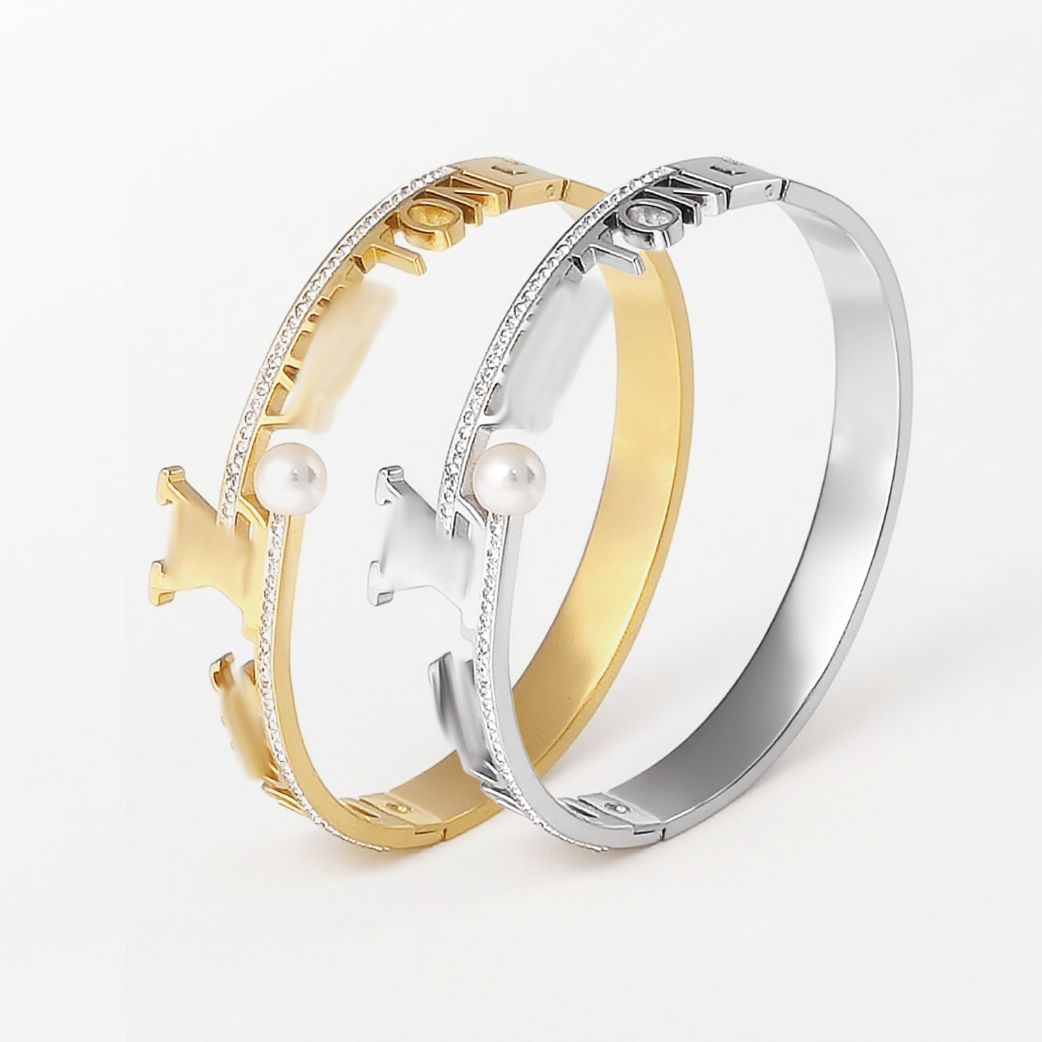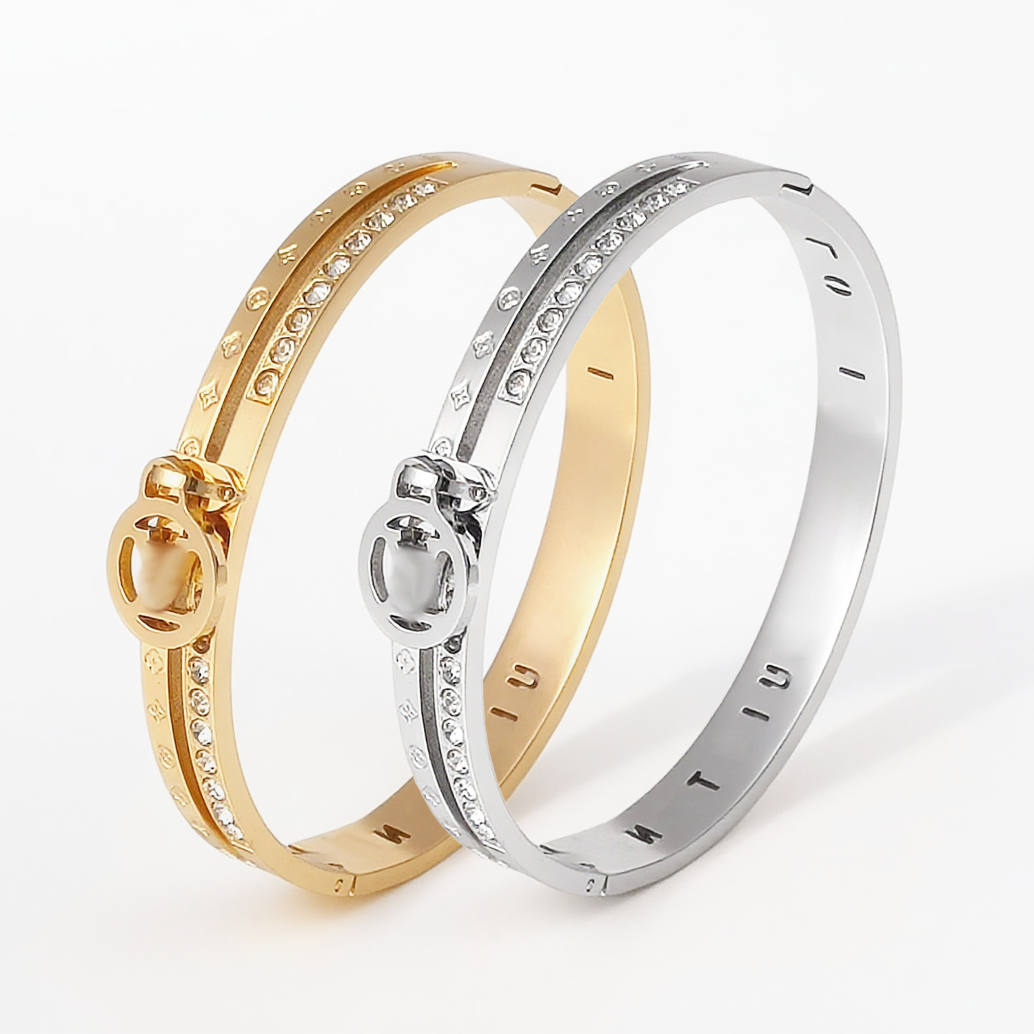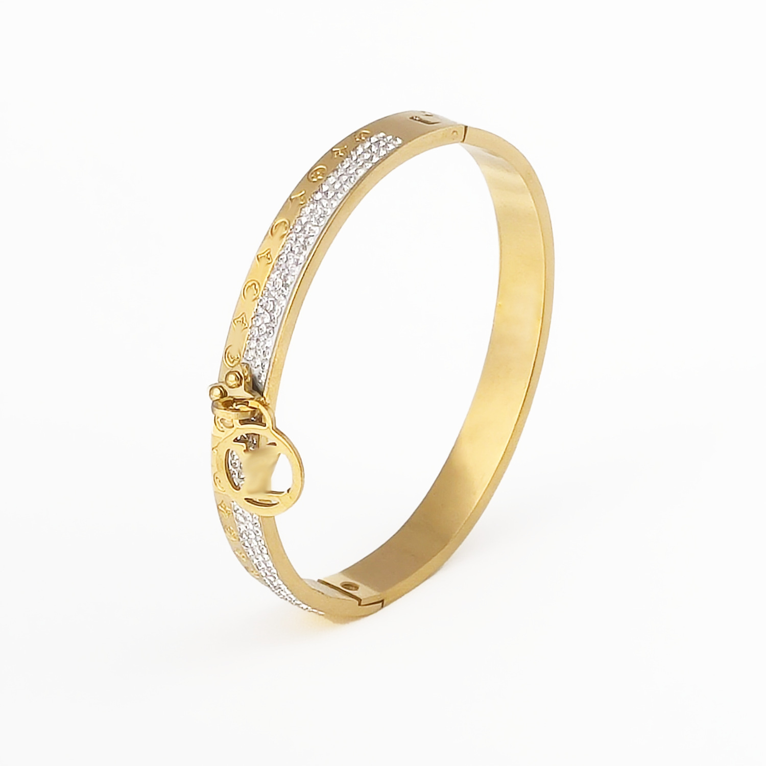 欧美跨境驴家钛钢手镯不掉色饰品镶钻泥巴钻18k金手环手饰首饰