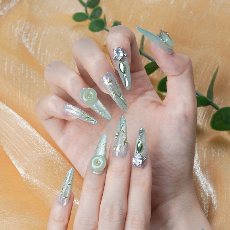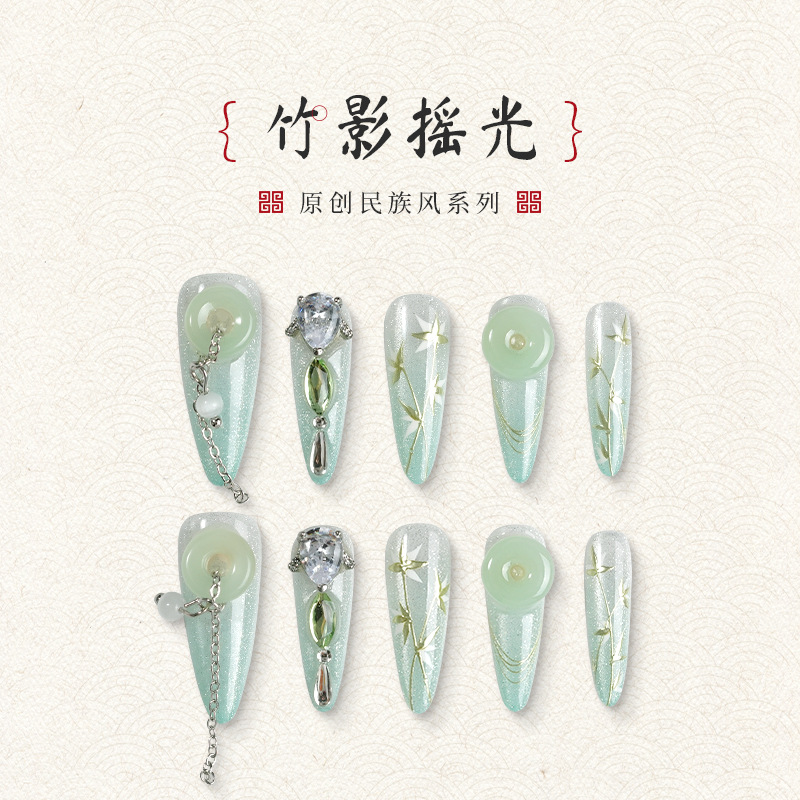 【竹影摇光】国风奢华重工穿戴甲原创设计玉竹新中式手工高定美甲