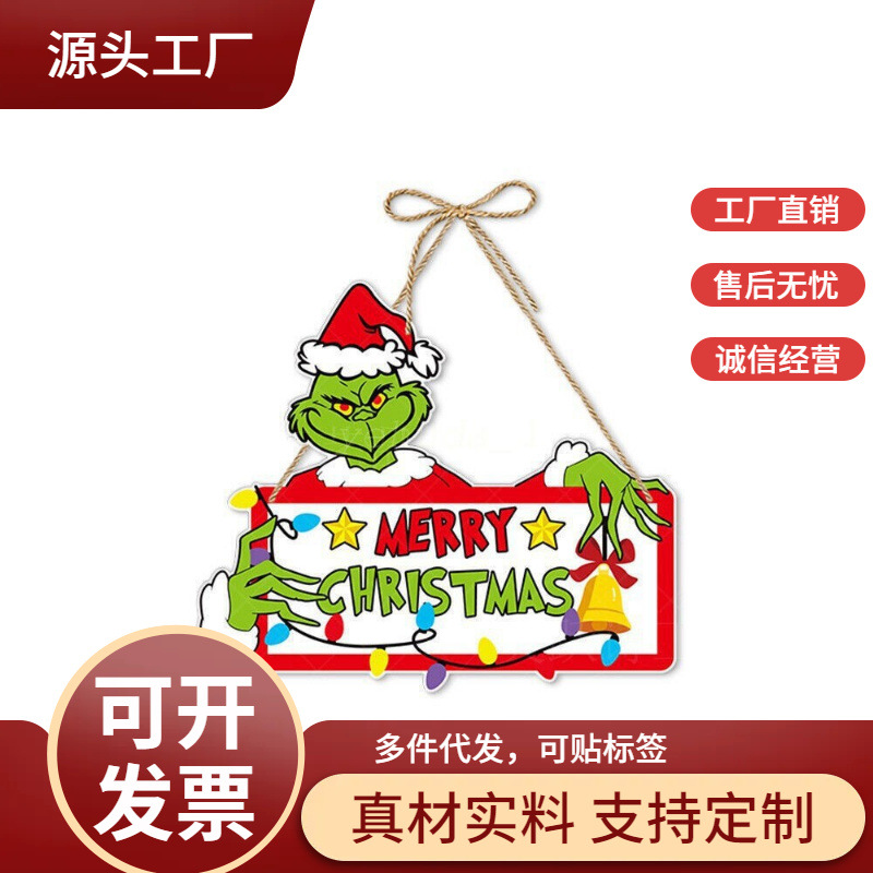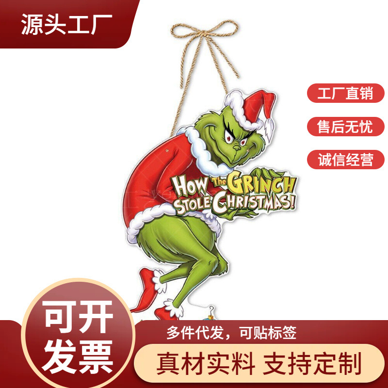 跨境圣诞节门挂装饰 格林奇主题派对门挂 圣诞节主题派对门挂装饰