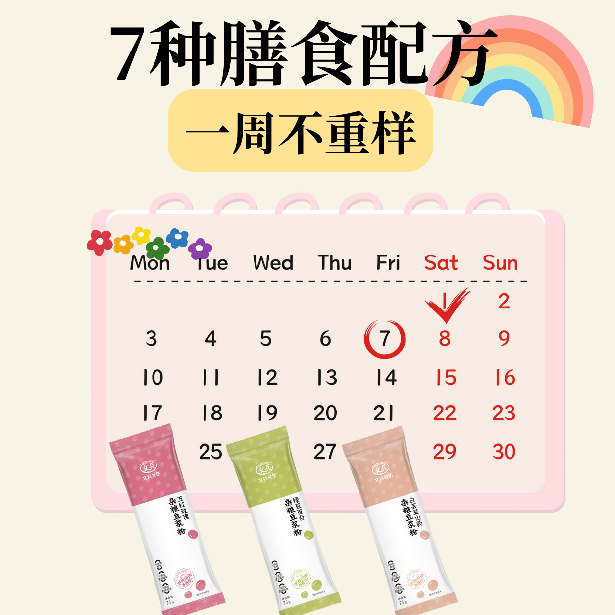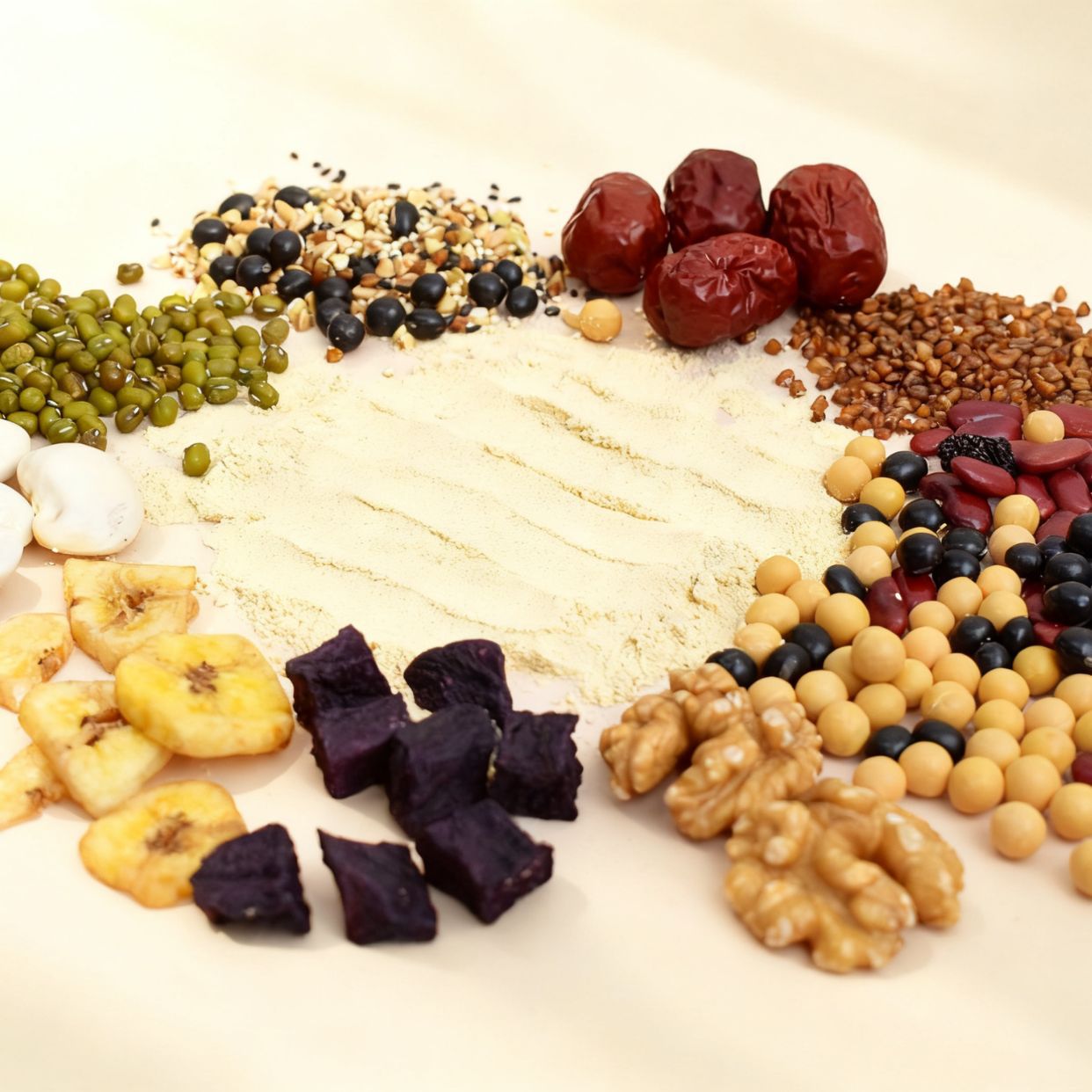 黑芝麻黑豆紫薯绿豆山药白芸豆魔芋百合玫瑰荞麦藜麦燕麦香蕉黑米苦荞黄小米白芸豆葛根红枣枸杞豆粉等等