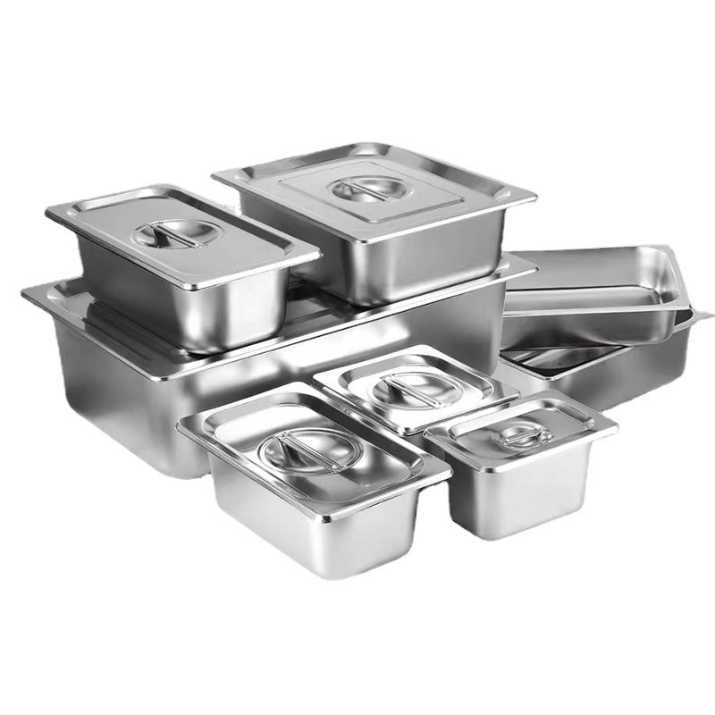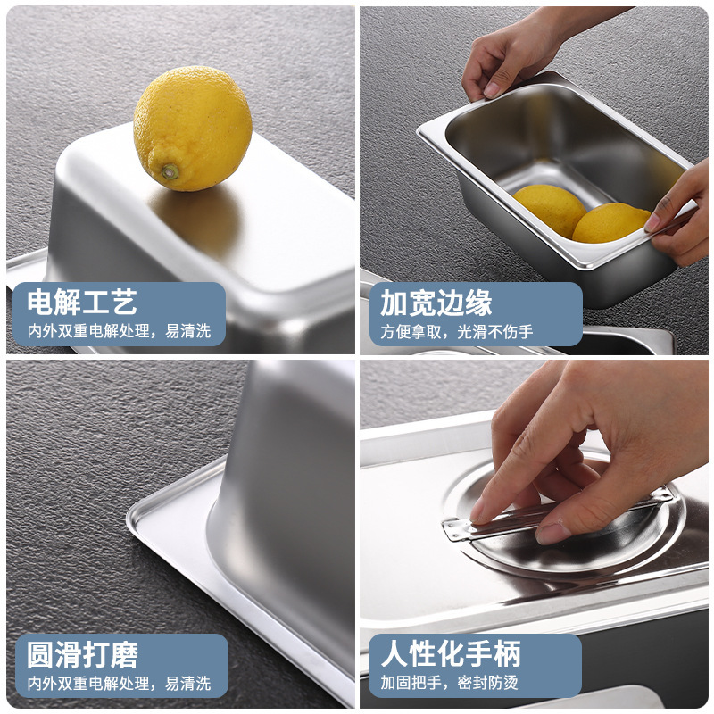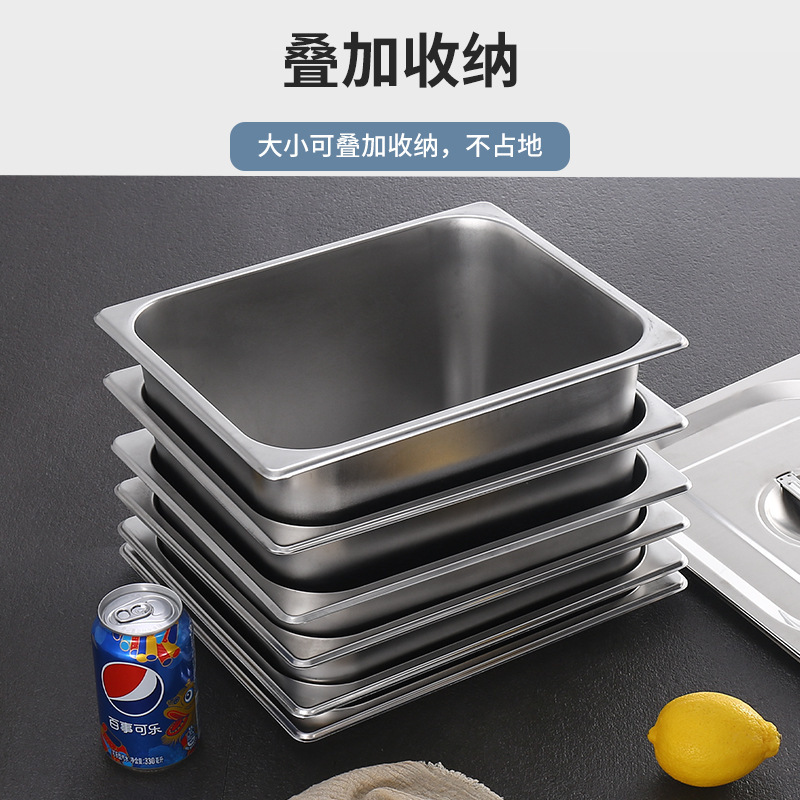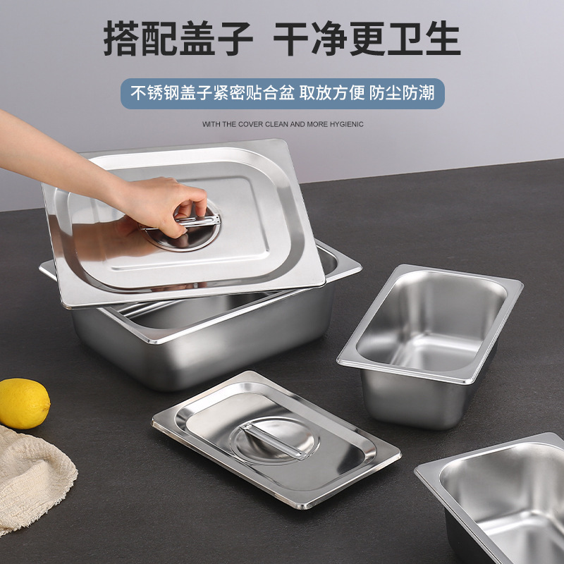 ✅跨境不锈钢份数盆长方形盆带盖商用食物盆快餐车自助餐盛菜盆