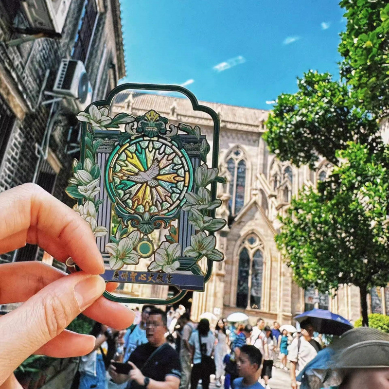 广州文创圣心大教堂雄鹰窗花透光透色冰箱贴金属磁吸旅游纪念品礼
