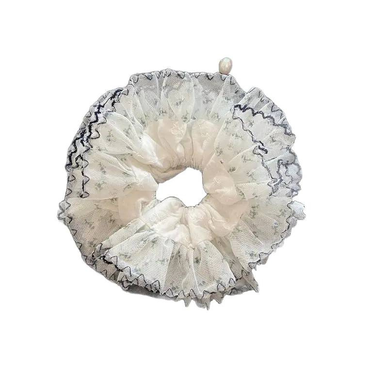 重工法式红色碎花蕾丝边大肠发圈高级感撞色丸子头发饰头绳女小众