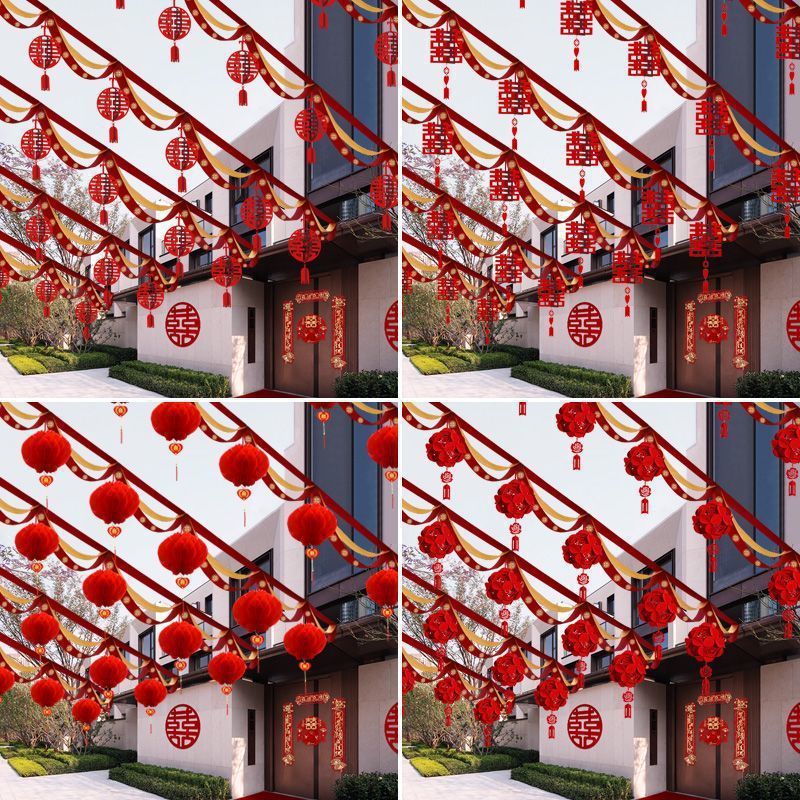 新款农村院子结婚装饰拉花室外婚礼现场彩带灯笼场景布置婚庆用品
