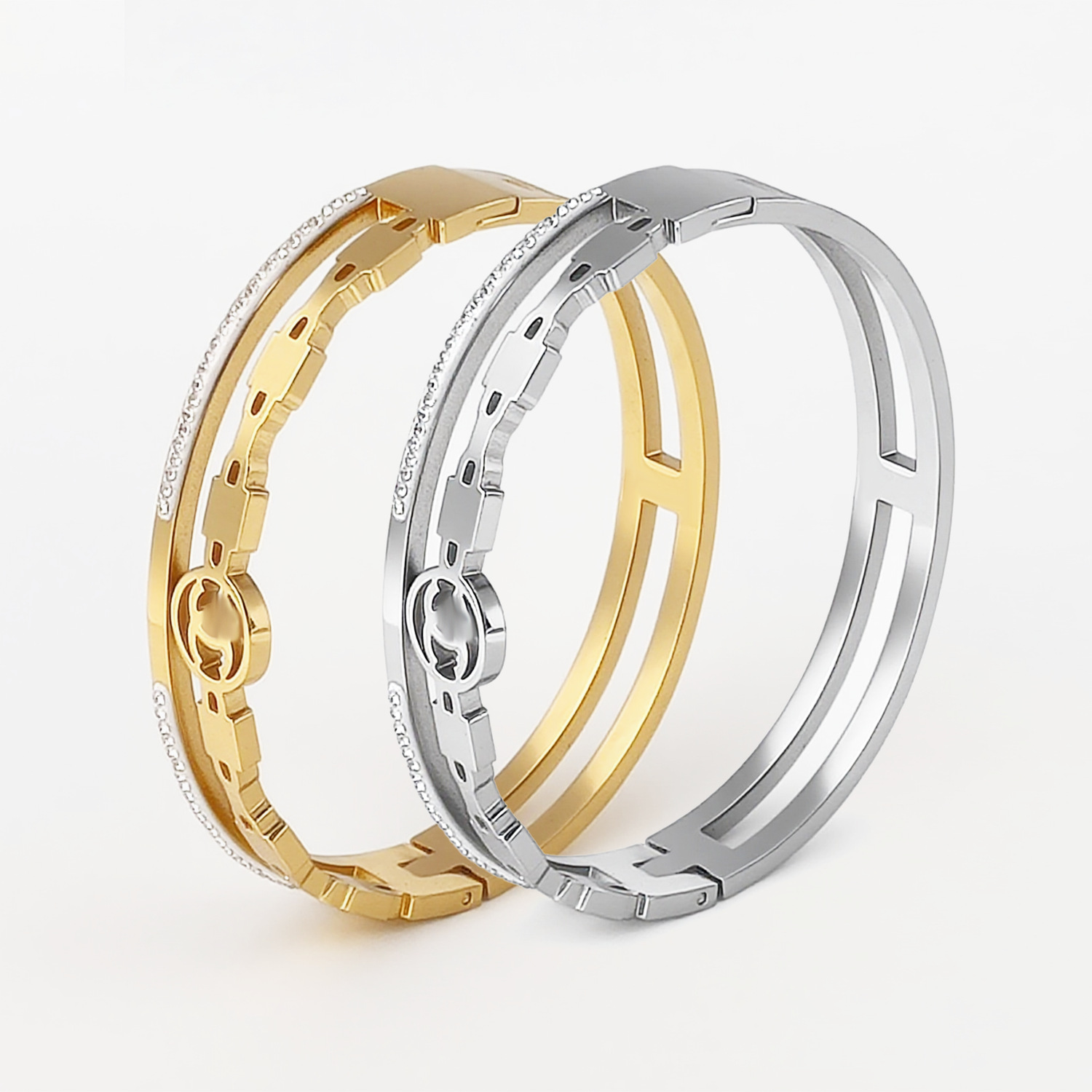 欧美跨境香家双c钛钢手镯不掉色饰品小香风手环光面镶钻手饰首饰