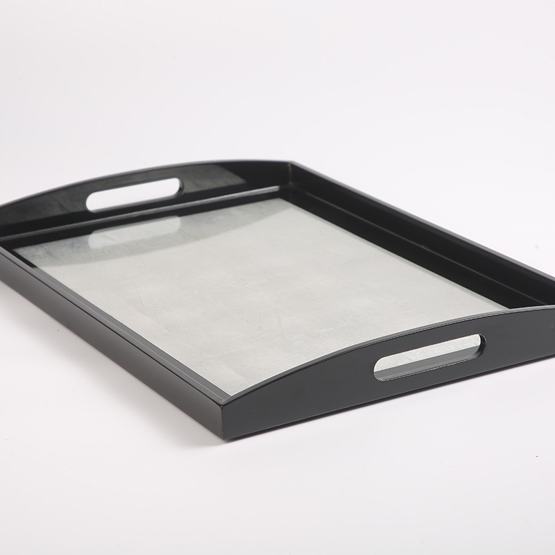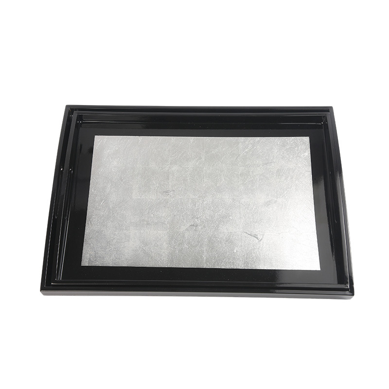 越南进口漆器漆器摆件日式茶盘软装纯手工打磨银箔进口茶盘摆件