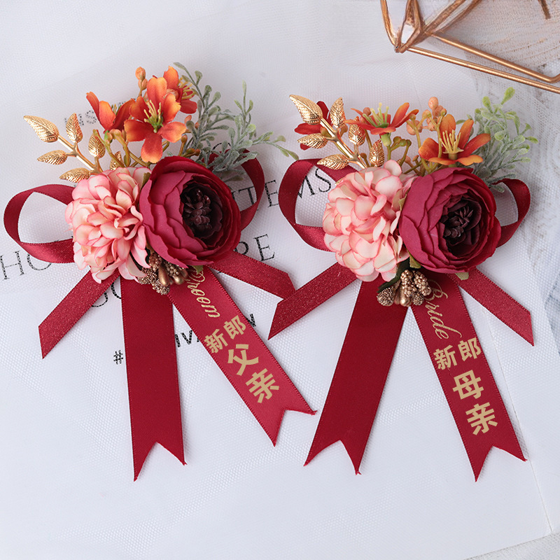 颜色 | 红色—红色飘带【新娘父亲新娘母亲】一对 | | 颜色 | 红色—红色飘带【新郎父亲新郎母亲】一对 |