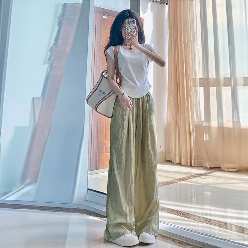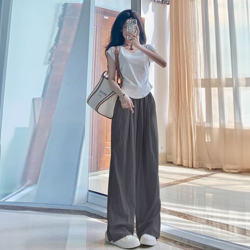 有口袋)多巴胺冰丝山本裤女夏季春秋高腰垂感宽松慵懒风阔腿裤女