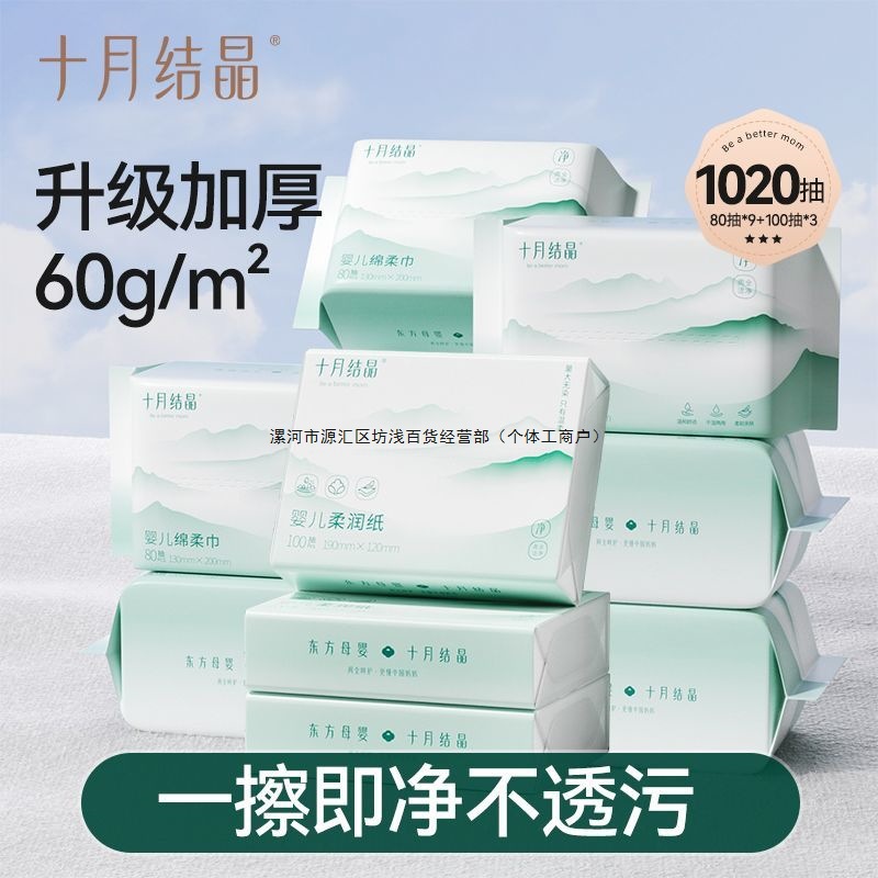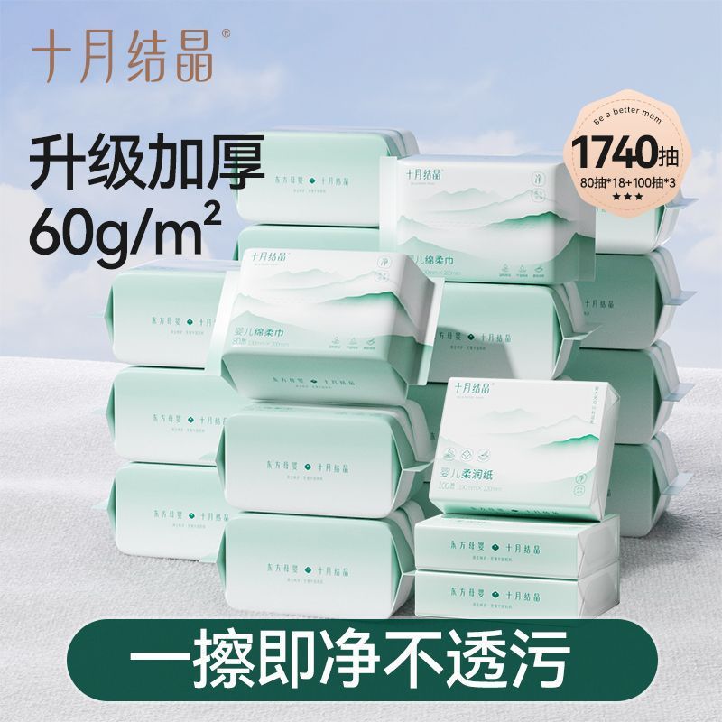 十月结晶婴儿绵柔巾干湿两用手口屁宝宝新生儿洗脸巾加大加厚80抽