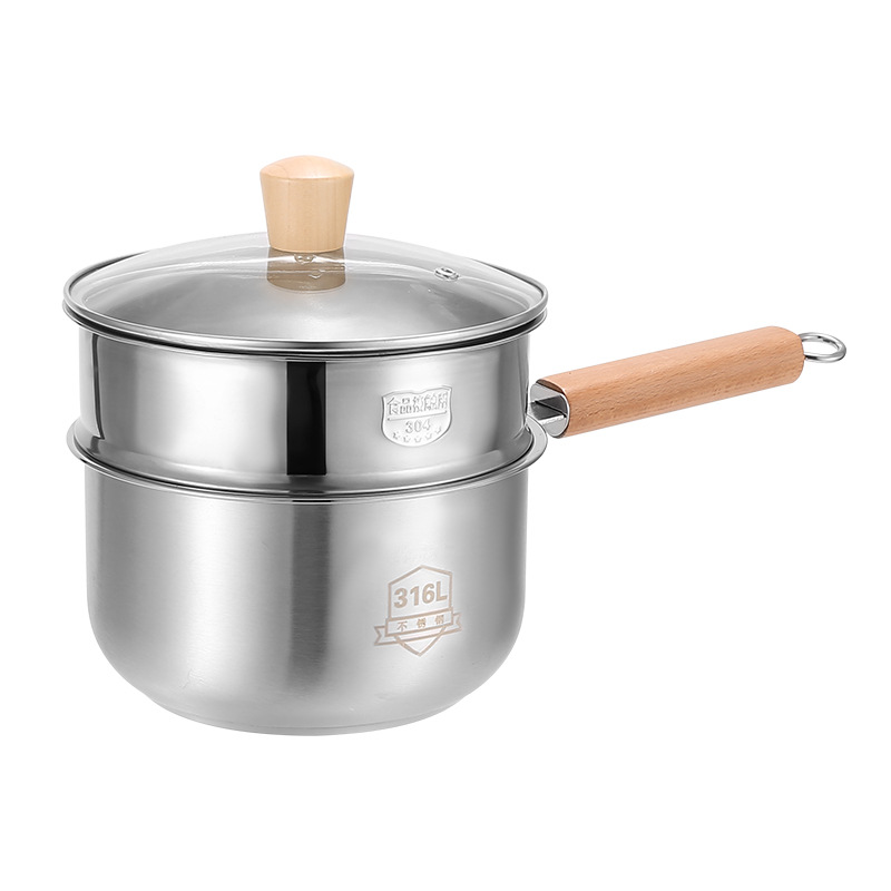410不锈钢宝宝专用辅食锅木柄小奶锅婴儿煎煮一体蒸锅电磁可用