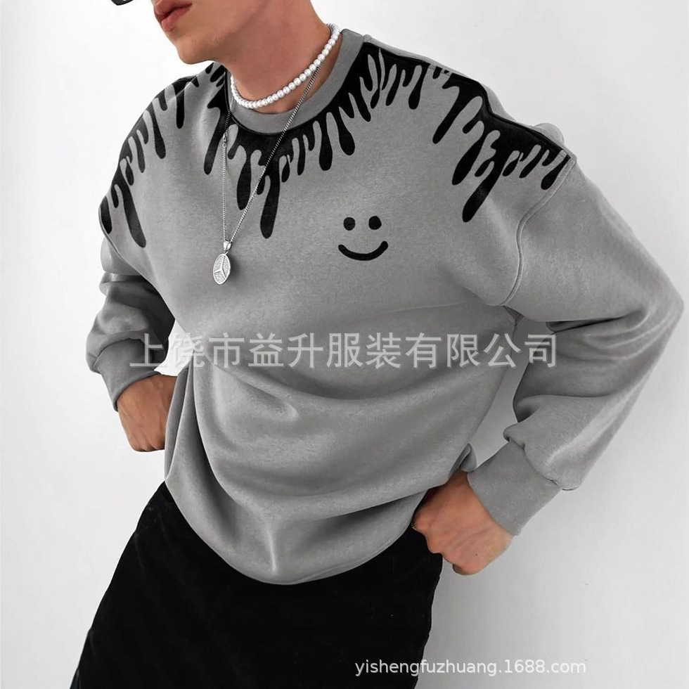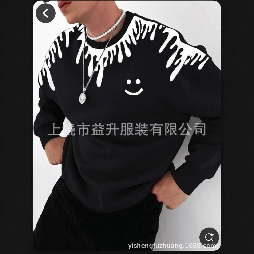 2025秋季男士休闲百搭长袖圆领上衣 高街时尚舒适套头圆领男士卫