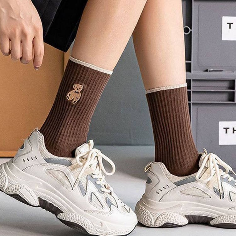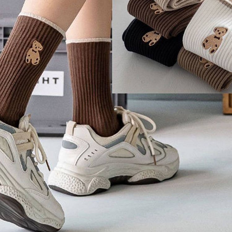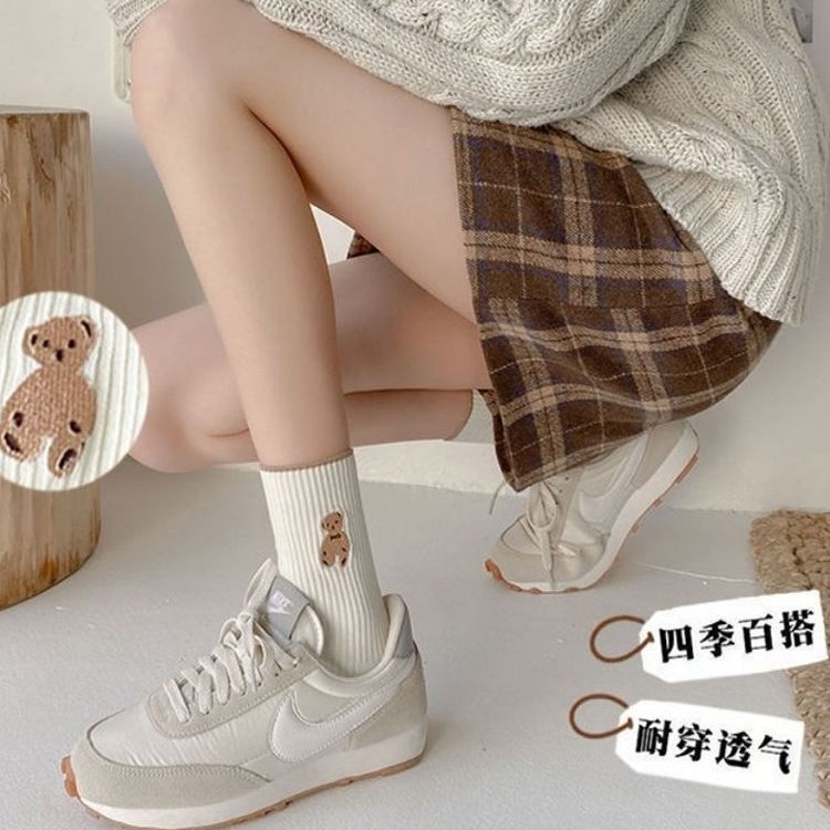 | 堆堆袜子秋冬女可爱 | 小熊袜子女韩版中筒袜夏季薄款日系卡通女士ins潮流百搭吸汗透气 |
