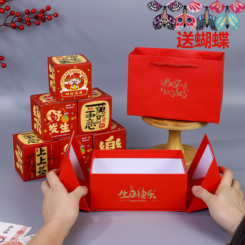 颜色 | 生日双开礼盒上上签+礼袋(16层) | | 颜色 | 生日快乐上上签16层+礼袋+4只蝴蝶 |