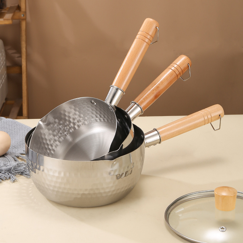 新款日式不锈钢雪平锅一体无涂层加厚辅食奶锅锤纹泡面汤锅批发