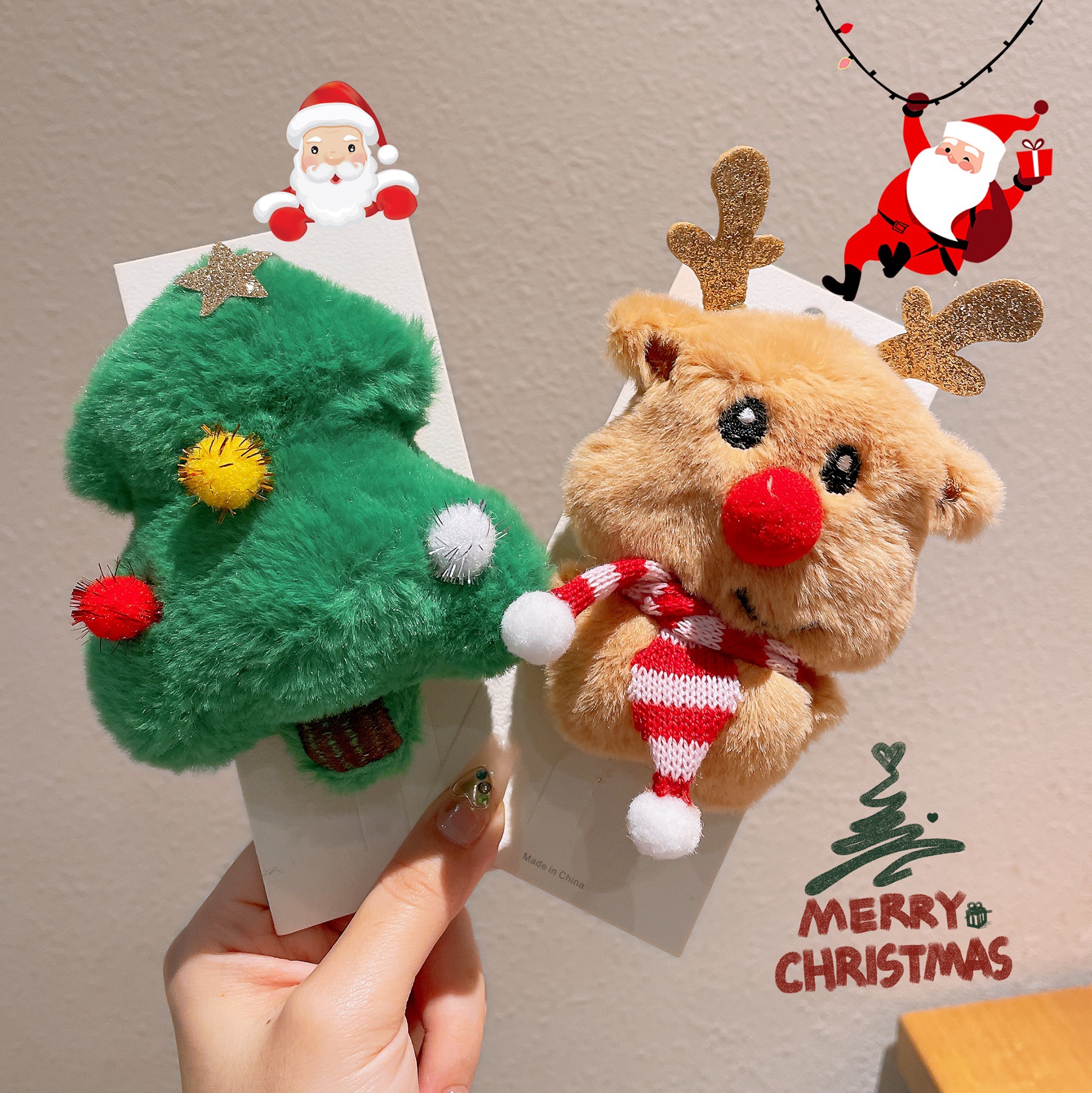 新款圣诞节麋鹿胸针卡通圣诞老人别针小礼品毛绒圣诞树徽章装饰品