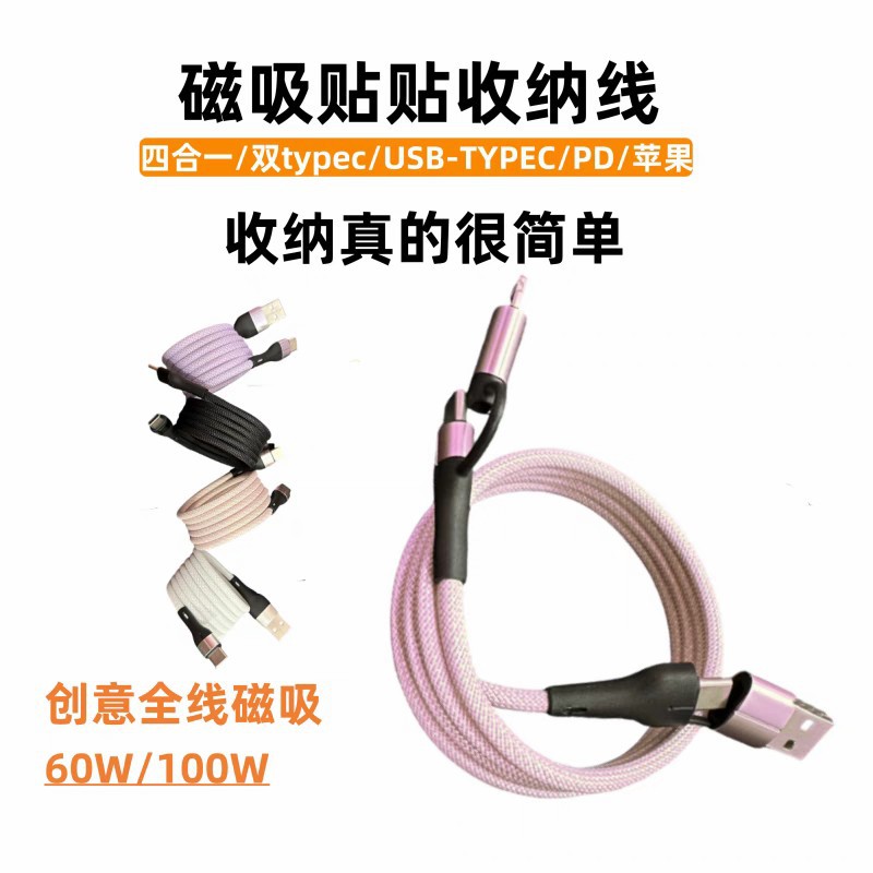 新款磁吸收纳数据双type-c快充PD100W数据线适用华为苹果iPhone15