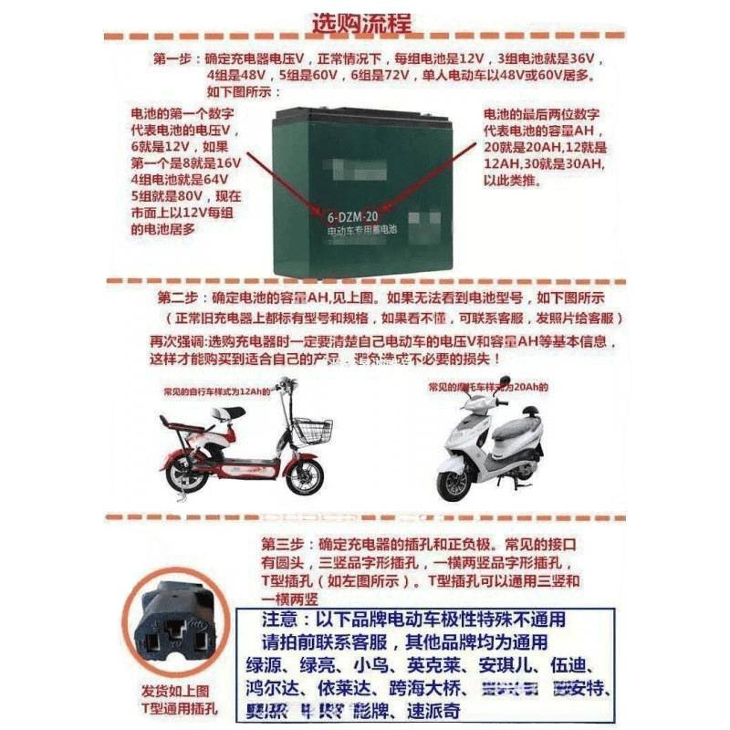 包装规格 | 72V20AH T型通用 | | 包装规格 | 48V12AH T型通用 |