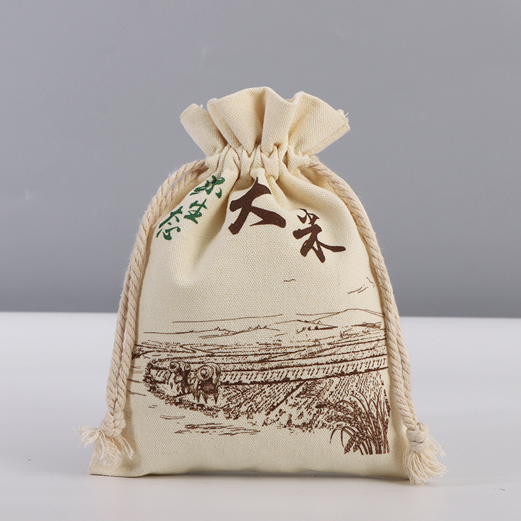 束口袋帆布收纳布袋可制作logo印花抽绳大米粮食收纳棉布袋可定制