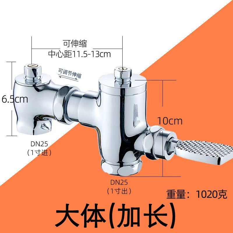 全铜卧式可伸缩式大便冲洗阀蹲便 厕所脚踏延时阀脚踩冲水阀
