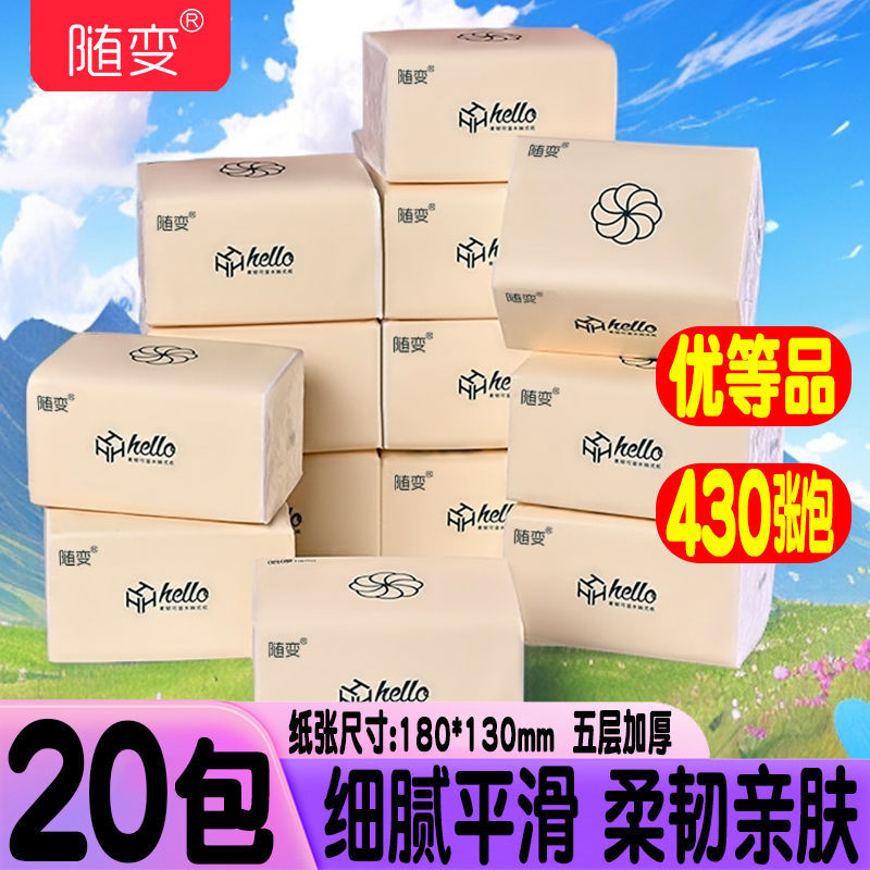 随变纸巾抽纸430张/包五层加厚餐巾纸母婴学生家用面巾纸卫生纸