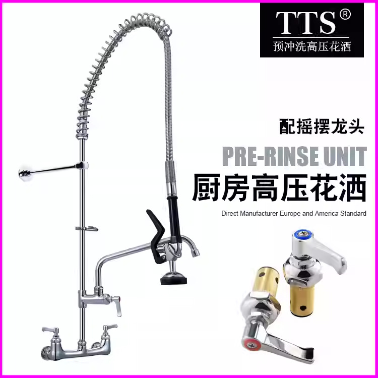 欧美跨境厨房花洒龙头 壁挂式8寸冷热预冲洗花洒入墙高压龙头摇摆