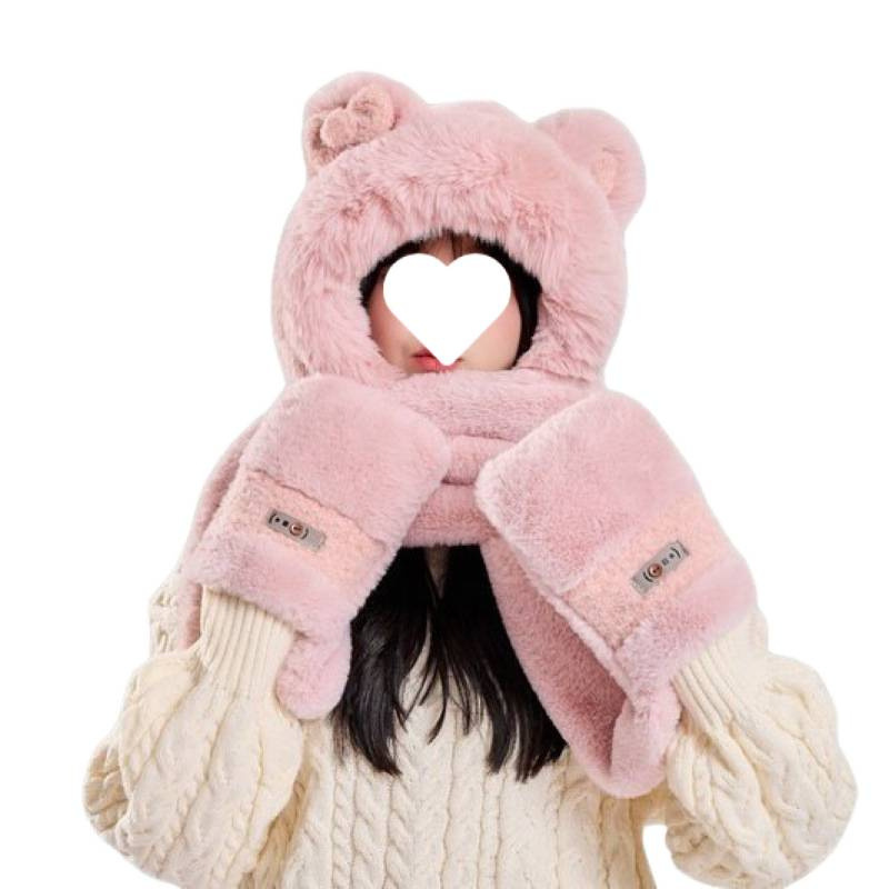 2025年秋冬季保暖帽子女款围巾一体护耳骑行抗冻显脸小帽源头工厂