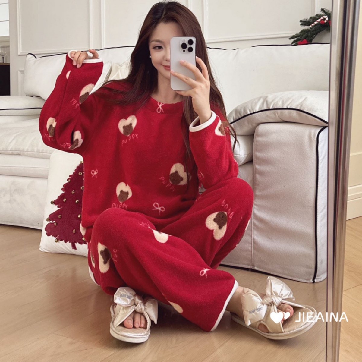JIEAINA云感软萌仙女暖暖衣女秋冬云舒绒甜美宽松圆领家居服套装